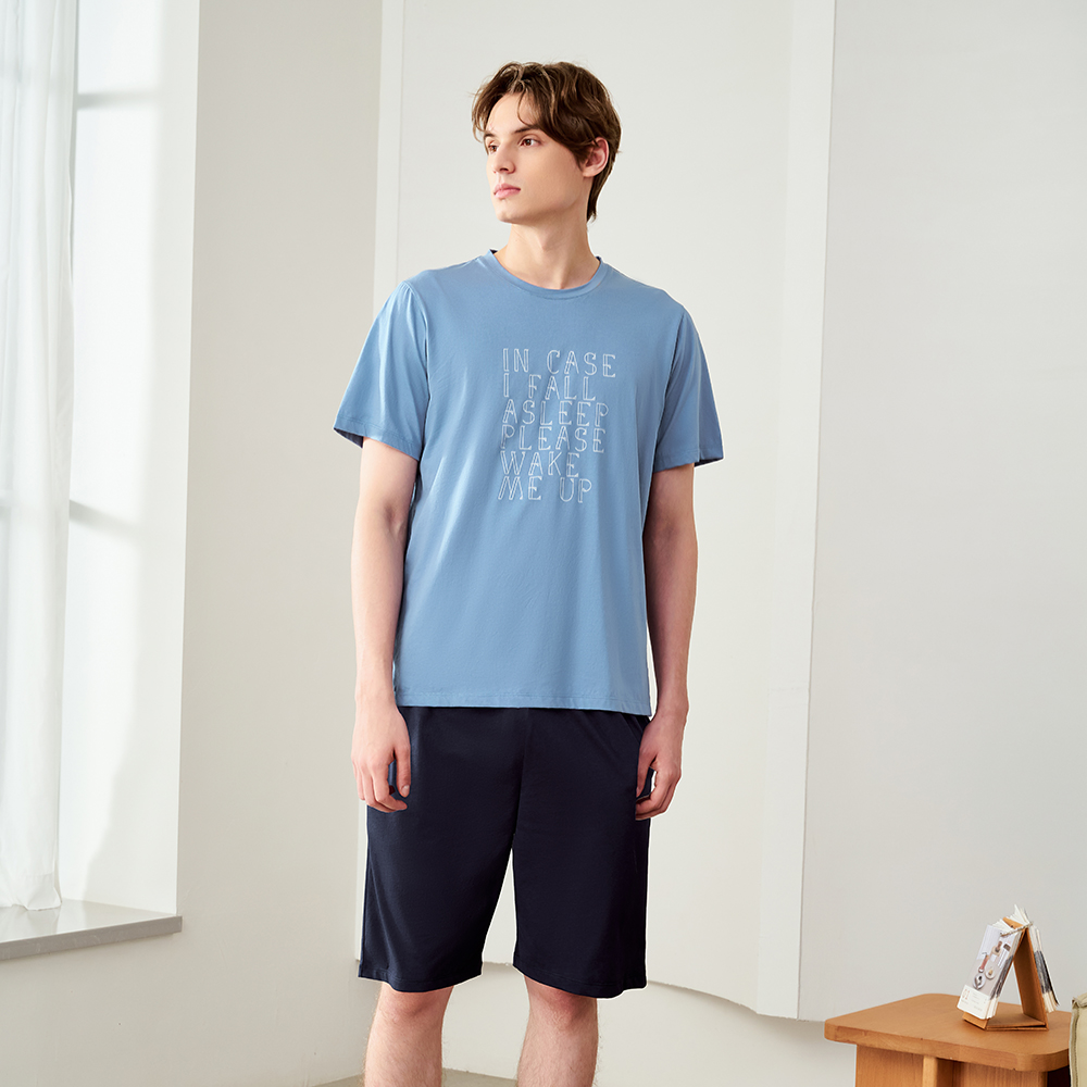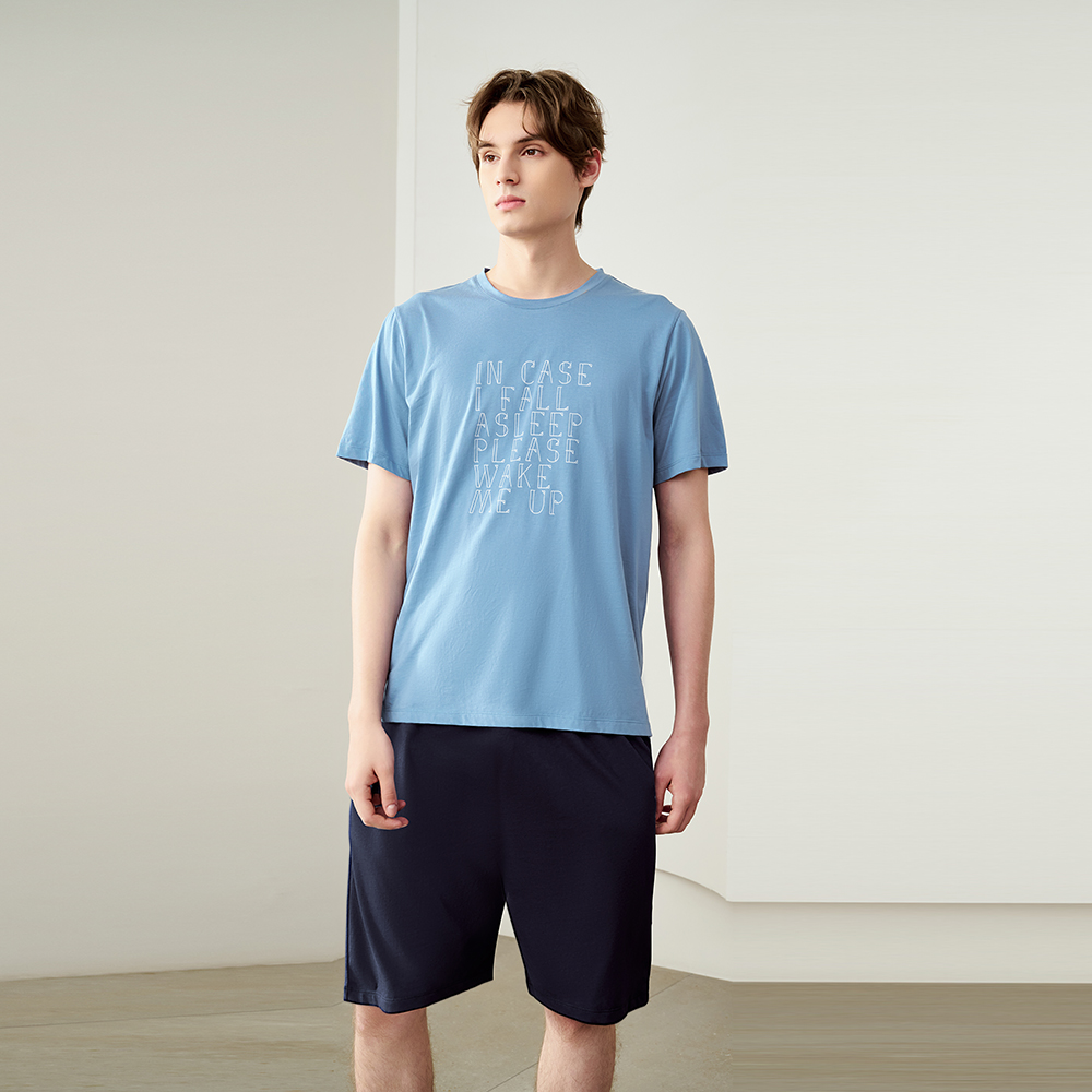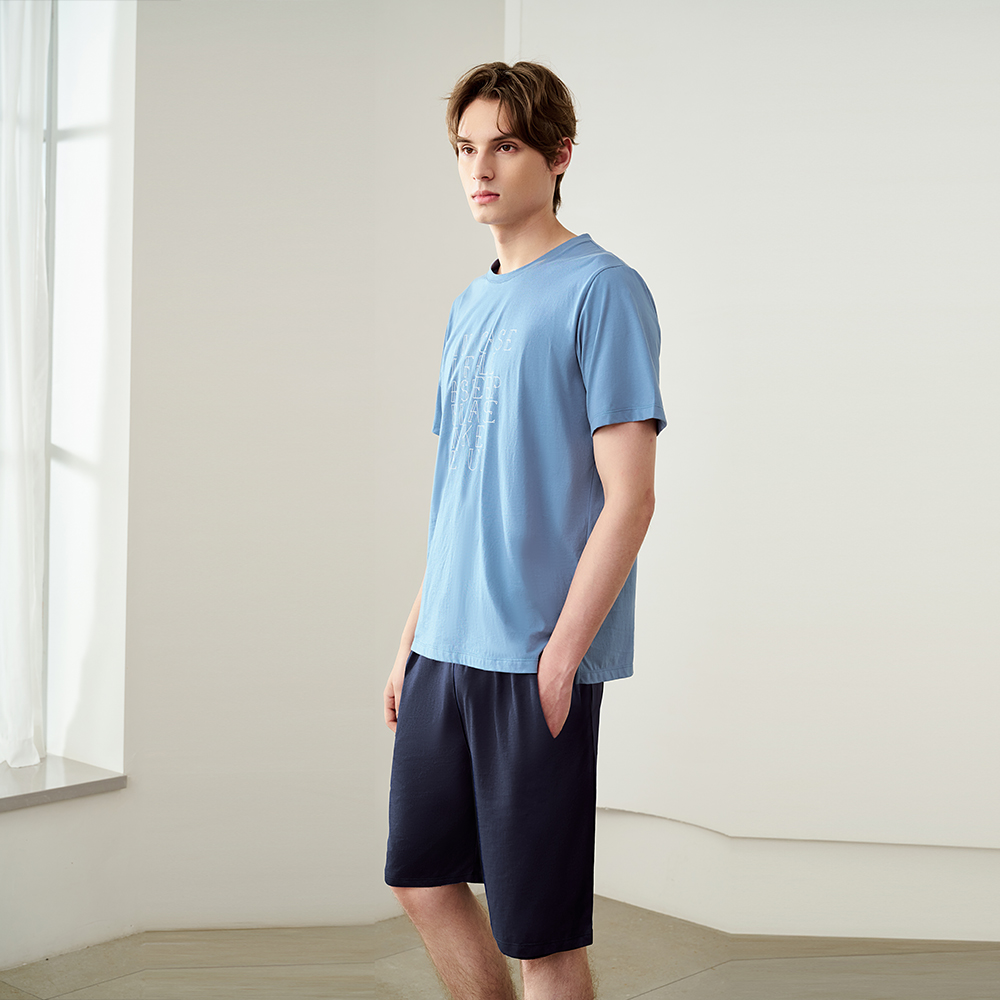 美标睡衣男士夏季短袖短裤薄款套头纯棉凉感家居服大码套装可外穿