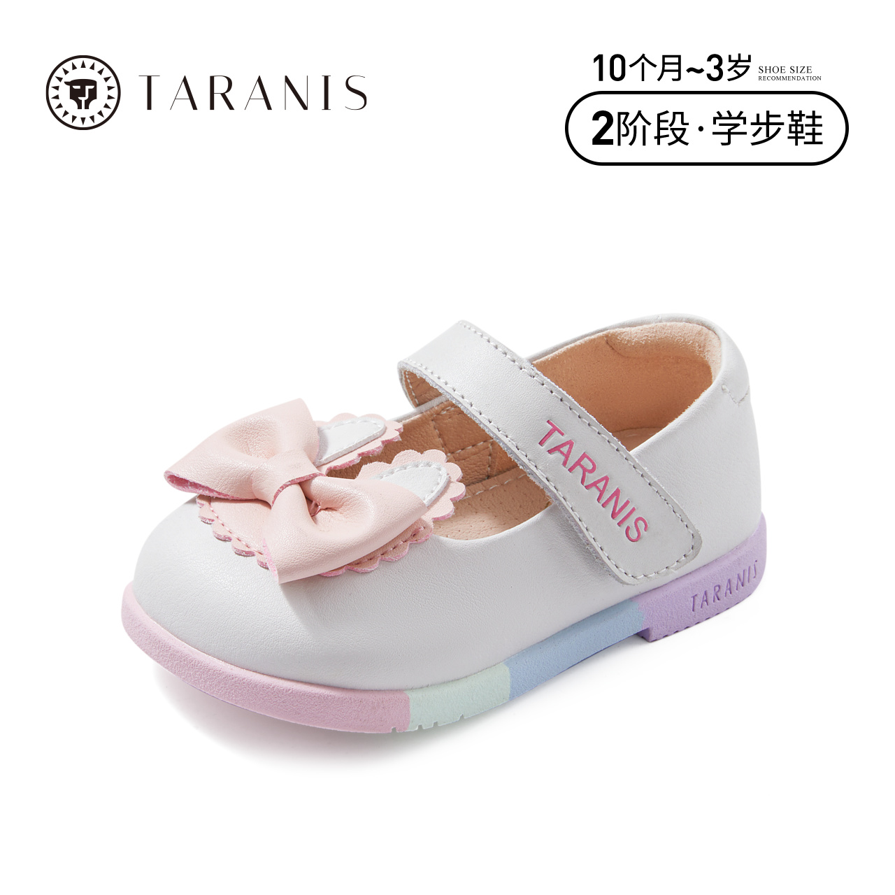 泰兰尼斯童鞋秋季新款公主鞋女童婴儿鞋蝴蝶结宝宝软底小皮鞋