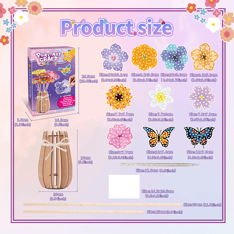 女孩diy手工儿童戳戳花艺术创意玩具装饰制作蝴蝶花瓶材料包套装