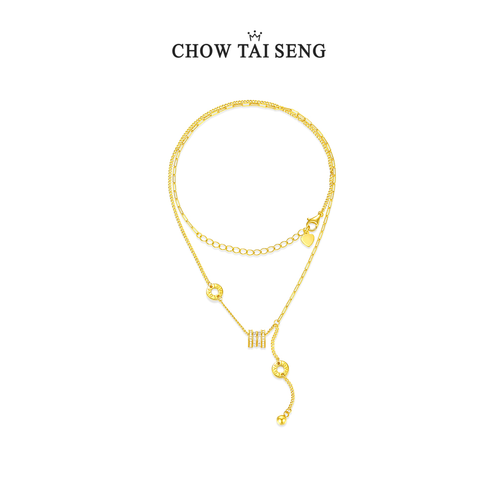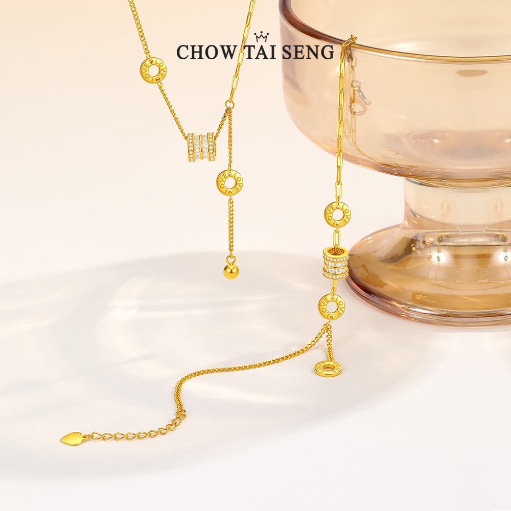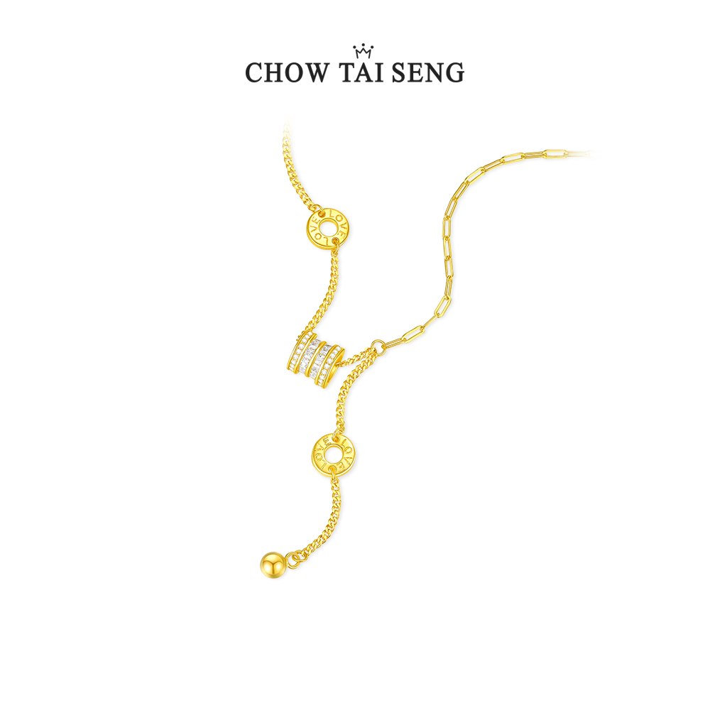 周大生金色小蛮腰银项链女款轻奢小众高级感锁骨链生日礼物送女友