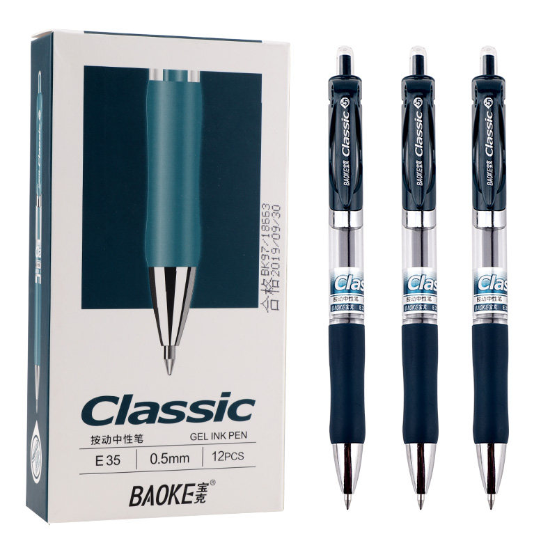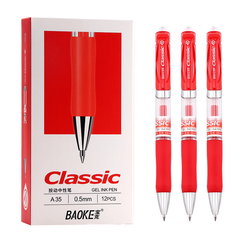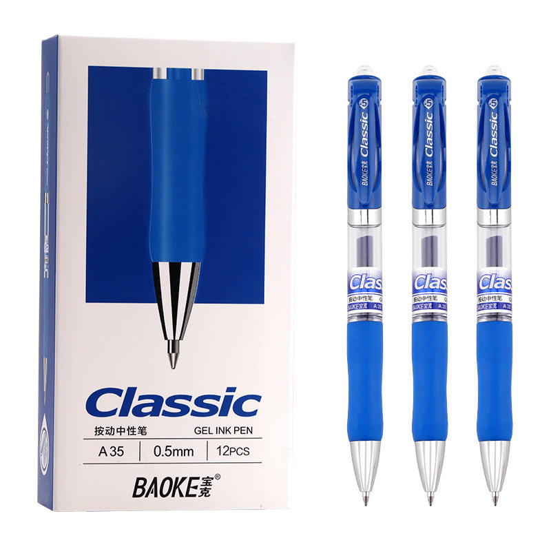 宝克A35按动中性笔文具12支装按动中性笔0.5按压子弹头办公签字笔