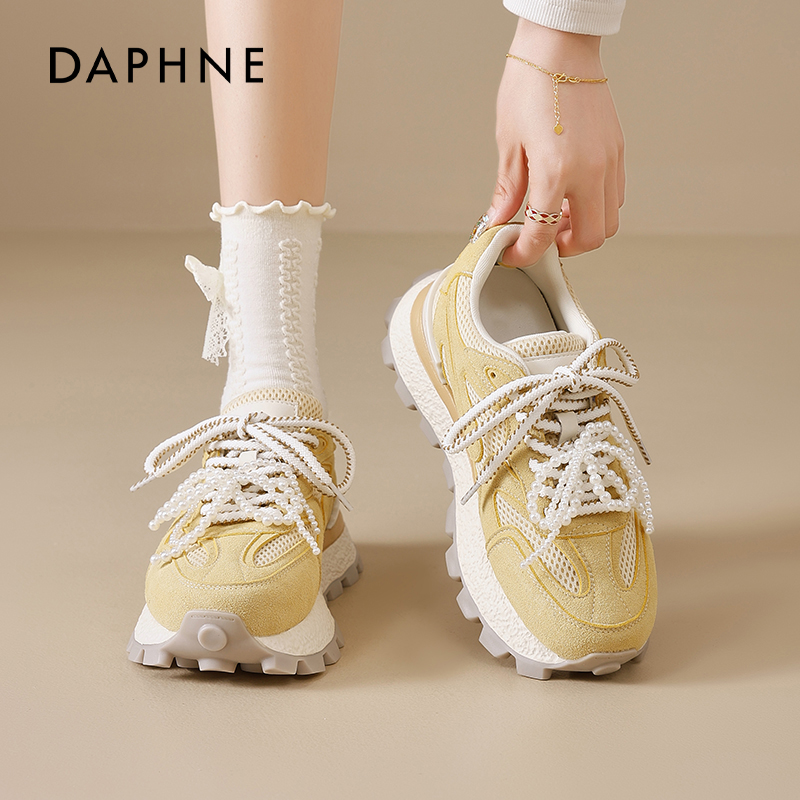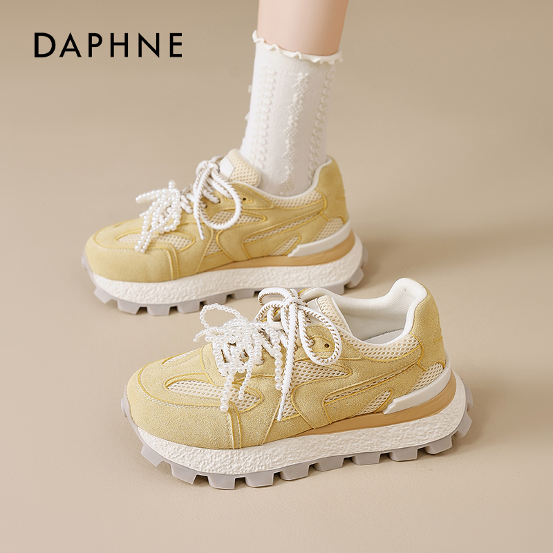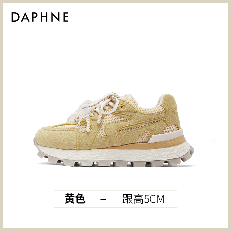 达芙妮黄色芭蕾德训鞋女秋冬厚底松糕阿鞋子甘小个子高级感老爹鞋