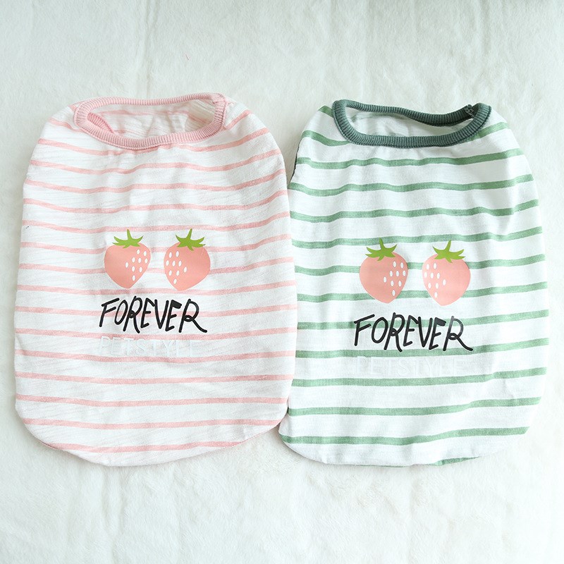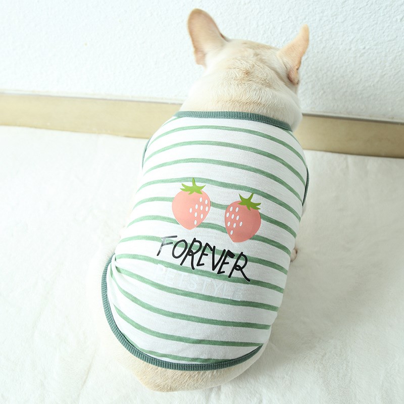 法斗草莓条纹背心竹节棉胖狗狗衣服加菲英斗巴哥两脚恶霸透气防晒