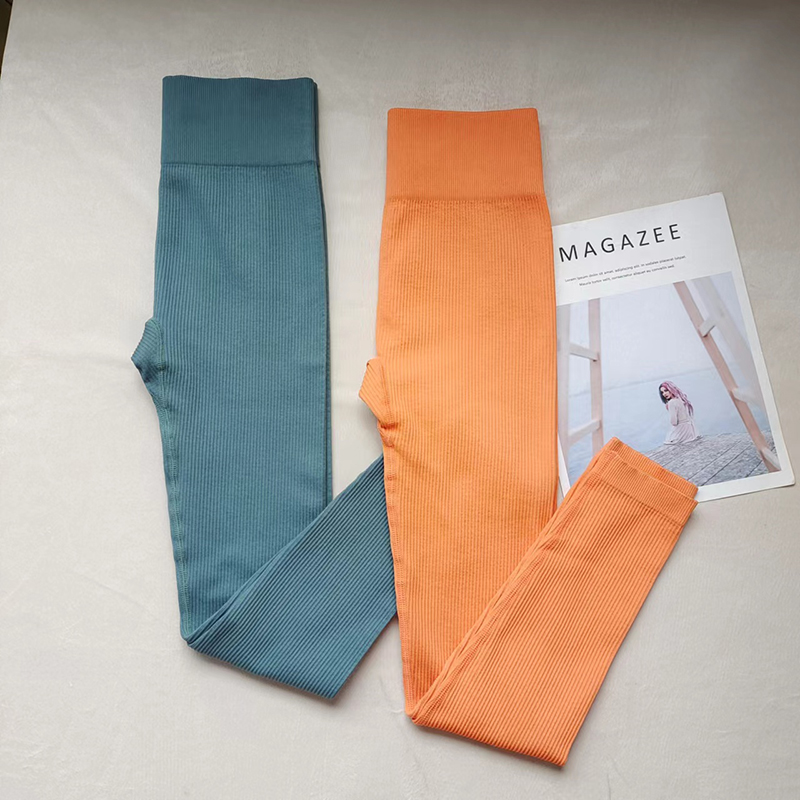 秋季高腰跑步紧身提臀高弹外穿针织料健身裤训练透气九分运动裤女