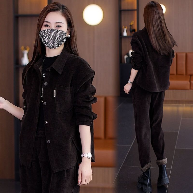 中年妈妈大码加绒加厚保暖套装2025冬季新款时尚大码洋气两件套女