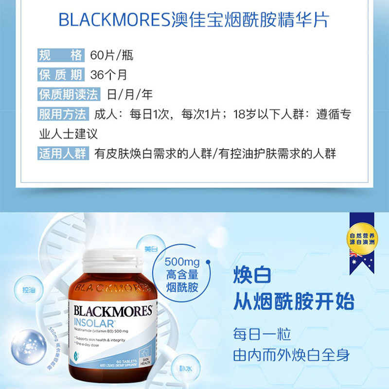 BLACKMORES澳佳宝烟酰胺维生素b3口服亮白小白丸60粒