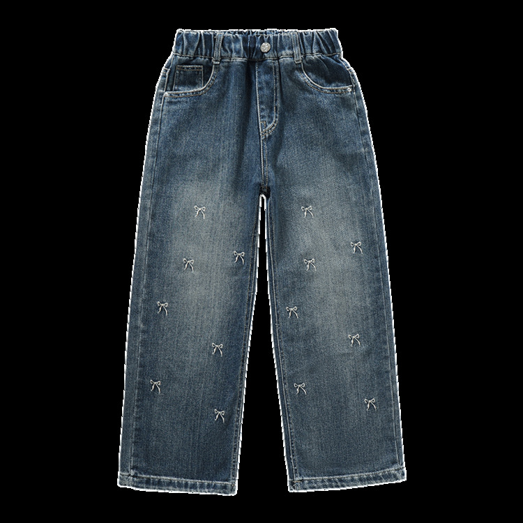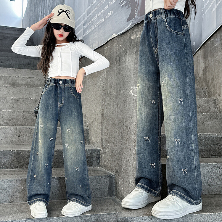 春秋季新款女童牛仔裤直筒裤时髦洋气阔腿裤中大童女孩宽松长裤子