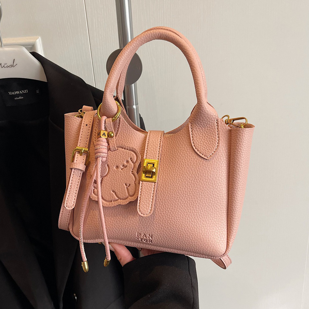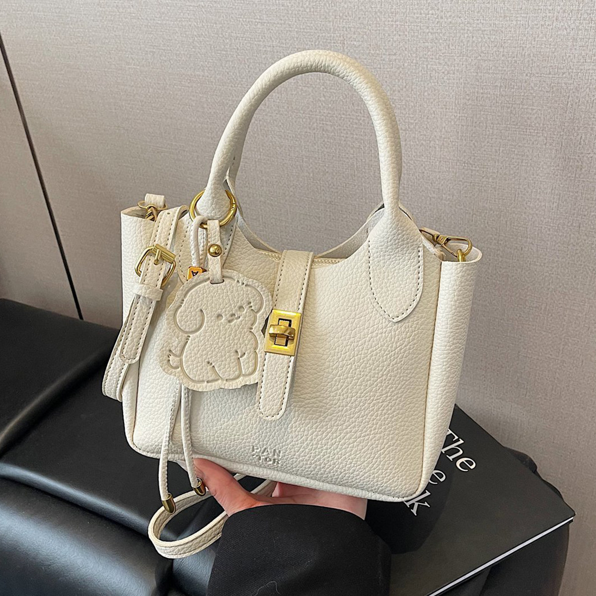 韩系小众设计简约百搭荔枝纹手拎包包女2025春季新款斜挎小水桶包