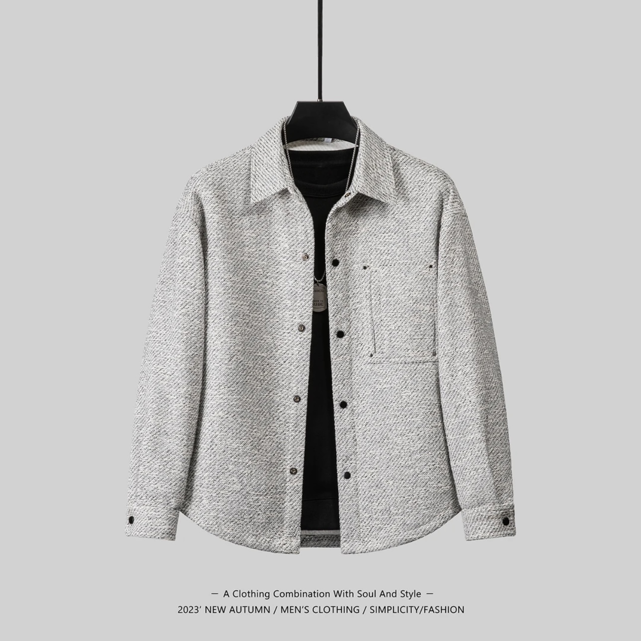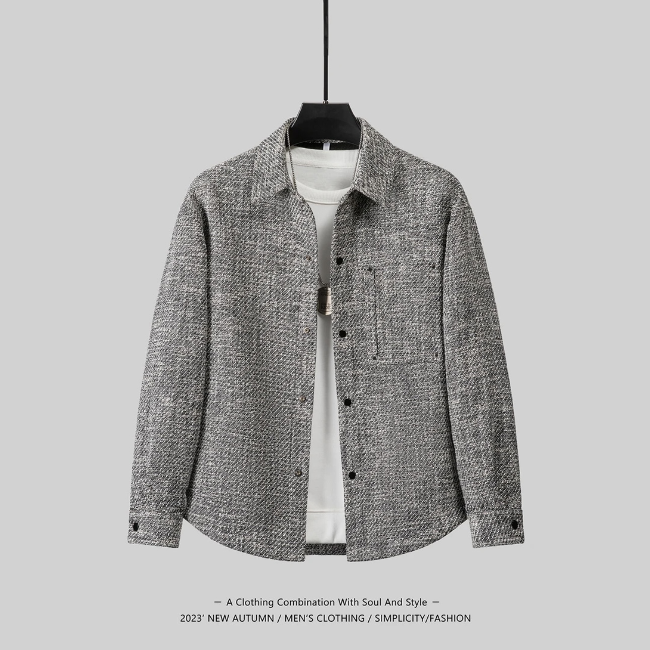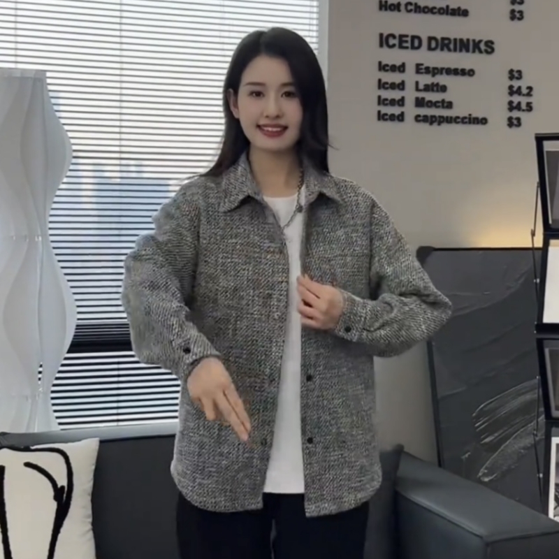 春季新款高级感毛呢小香风外套潮流百搭宽松休闲男女款翻领夹克男