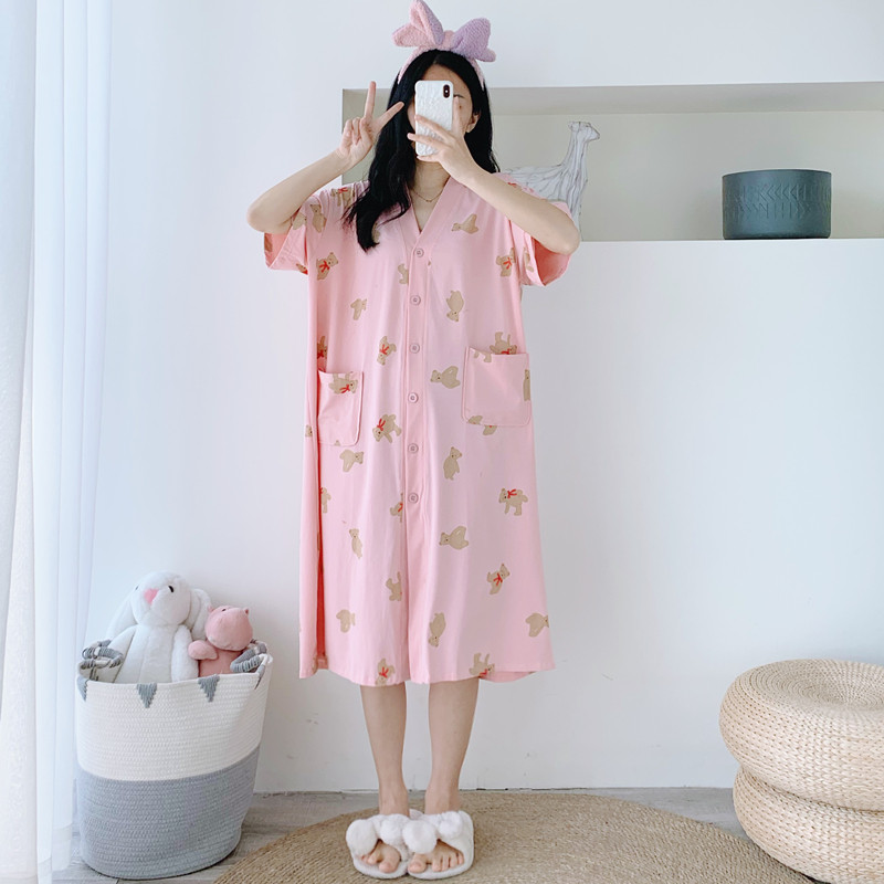 纯棉夏季卡通V领开衫睡裙