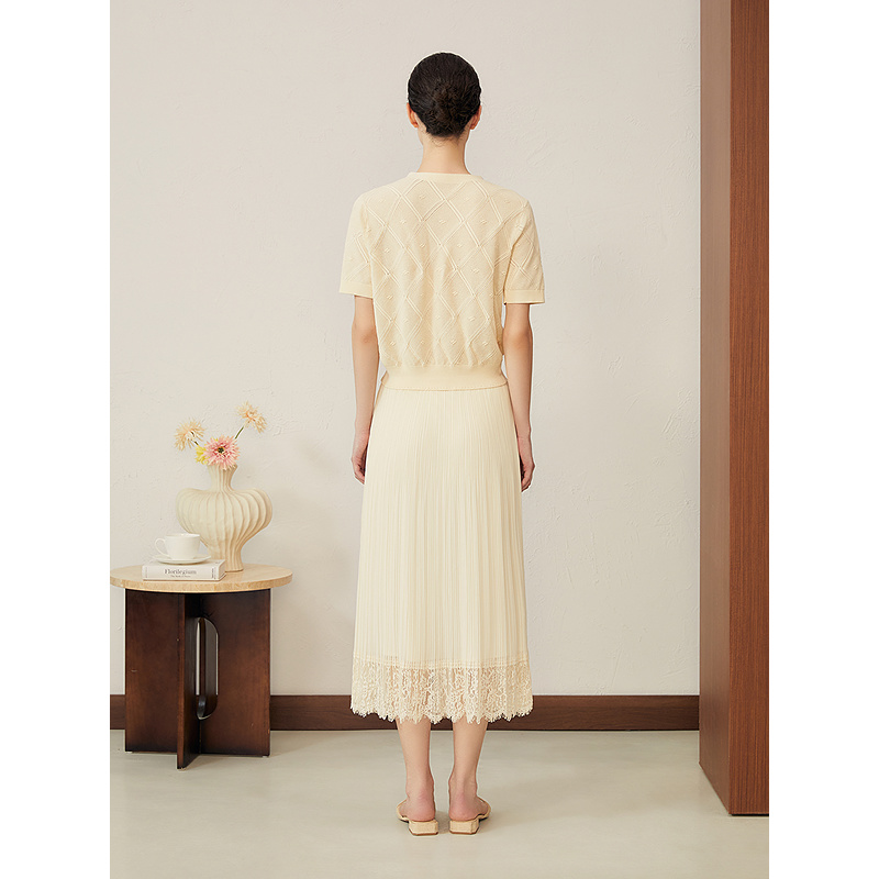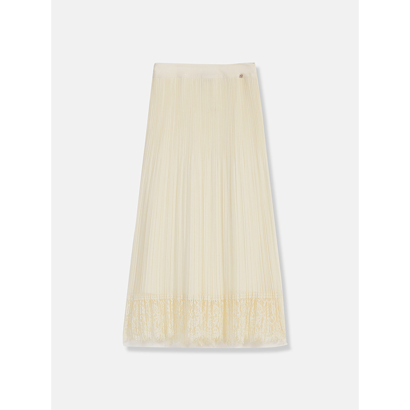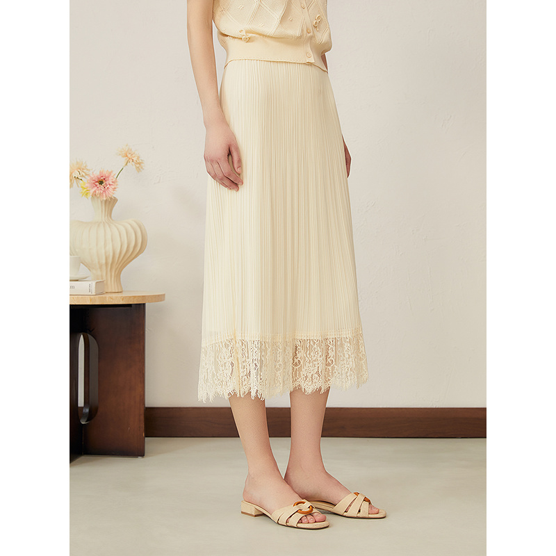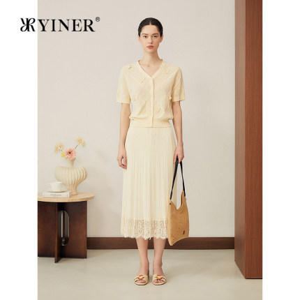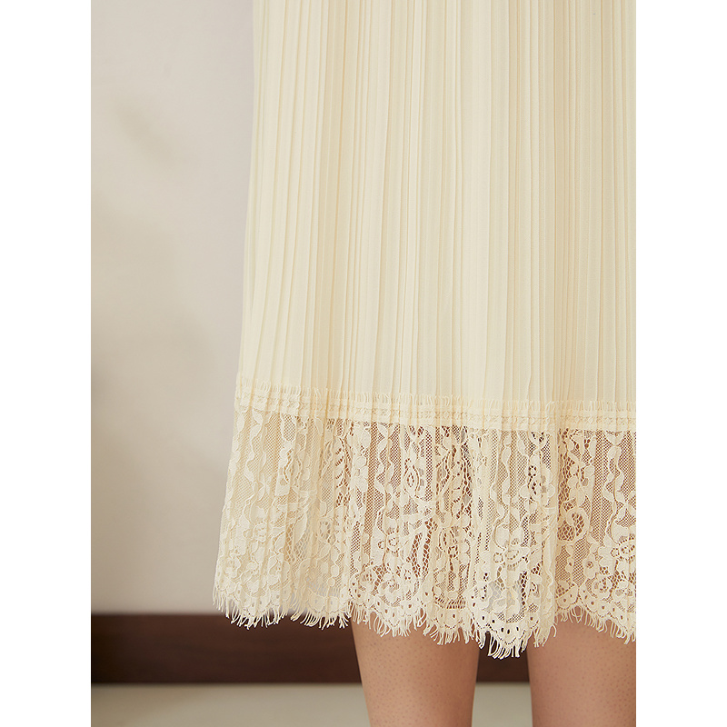 YINER音儿专选2025夏季新款法式透气百褶雪纺睫毛蕾丝花边半身裙