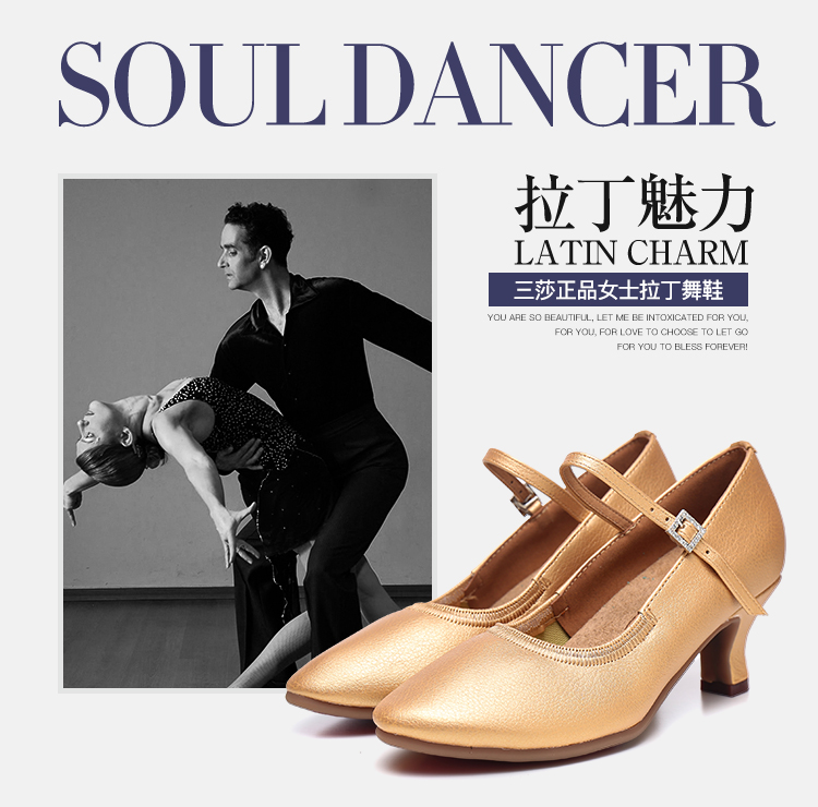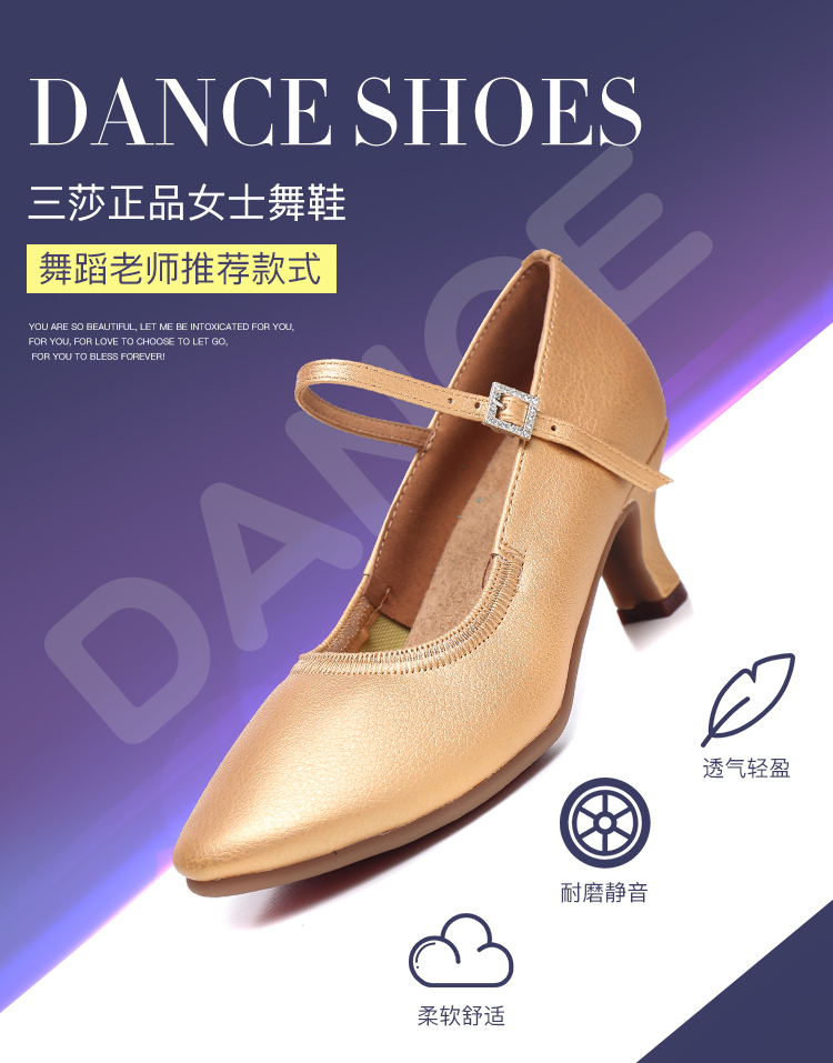 三莎新款女士中跟摩登舞鞋室外集体广场舞鞋低跟华尔兹跳舞鞋舞蹈