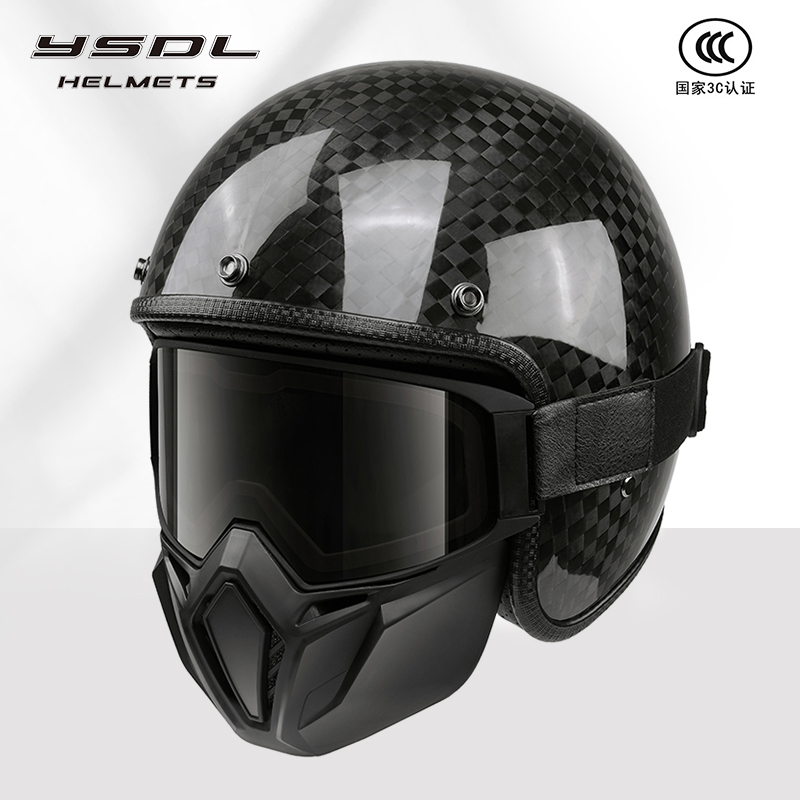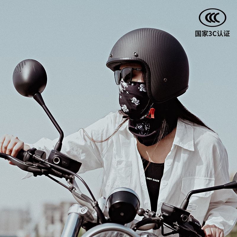 半盔男士女士四季碳纤维复古头盔