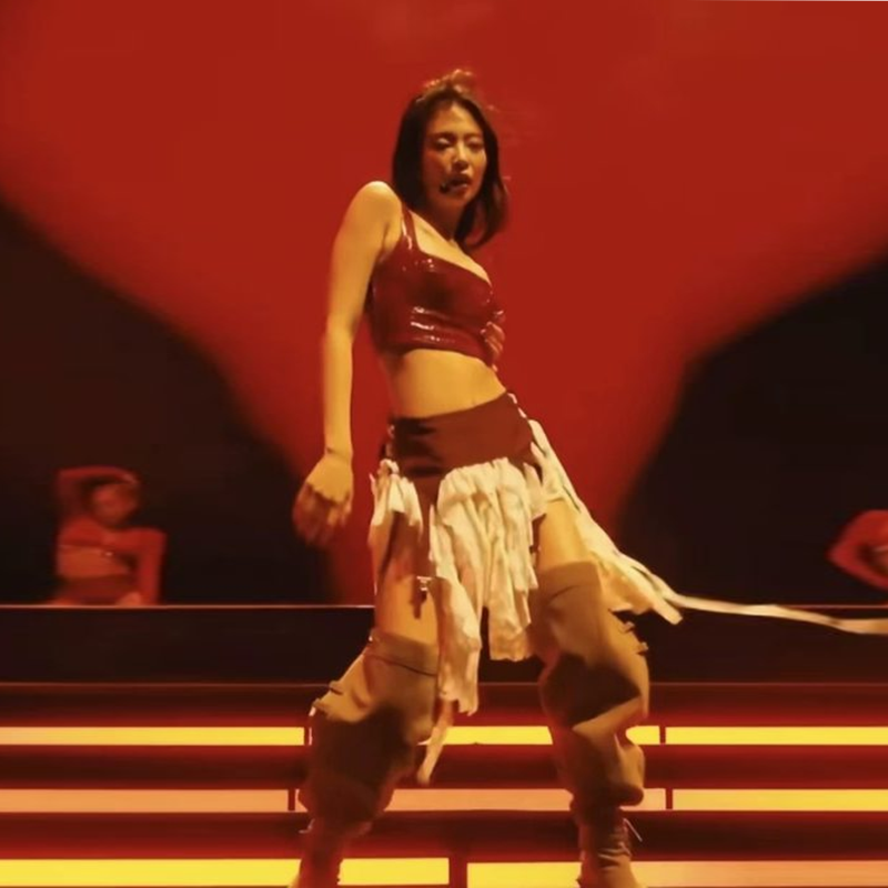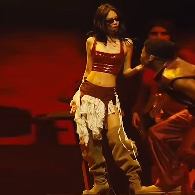 Amyway【jennie同款】美式复古拼接流浪风红色半身裙不规则蕾丝裙