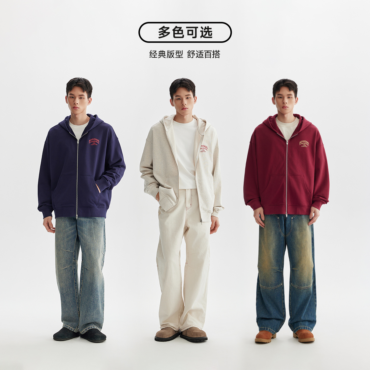 CHINISM赤尘 重磅卫衣男红色连帽开衫男士秋季宽松拉链外套上衣