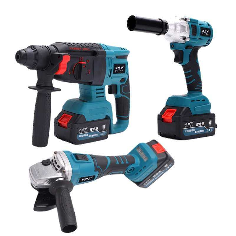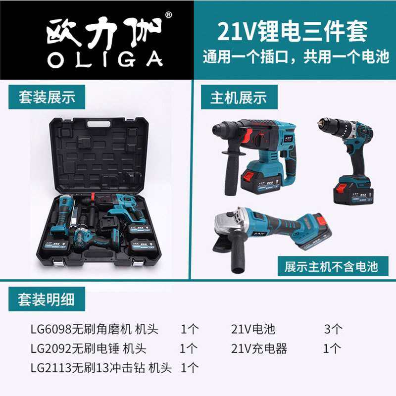 欧力伽角磨机电钻无刷扳手电锤三件套 锂电大功率冲击钻工具套装