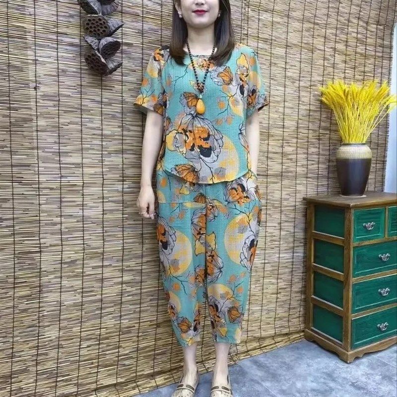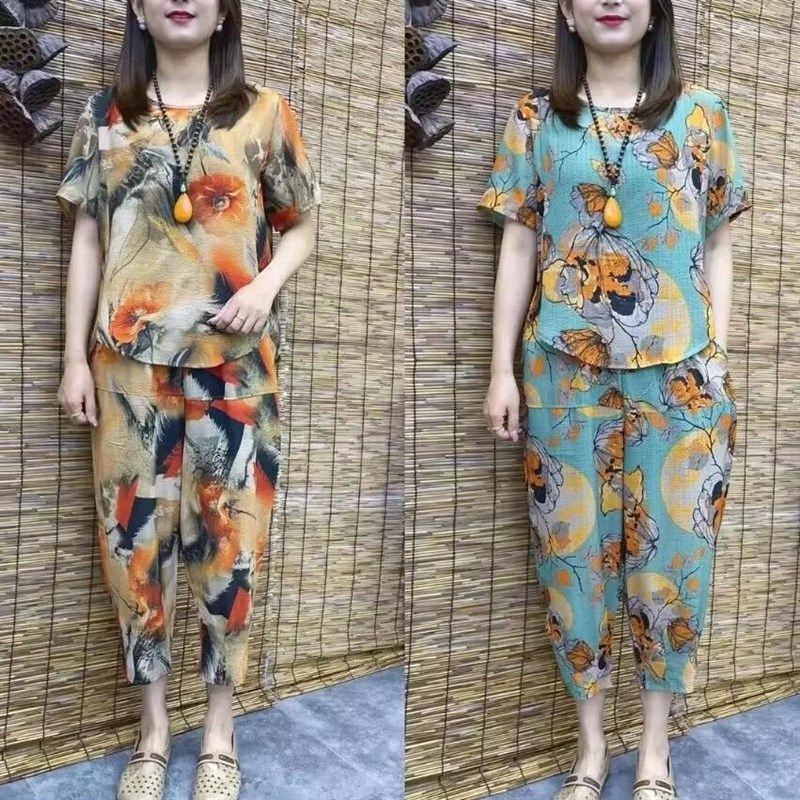 高档夏季妈妈装休闲套装新款短袖T恤中老年女大码上衣裤子两件套