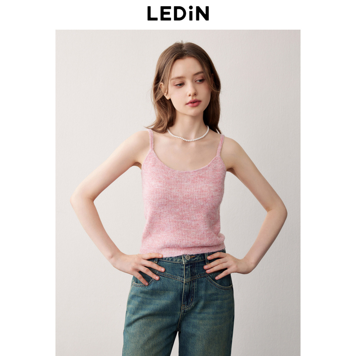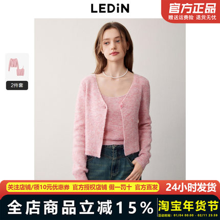 乐町大领背心开衫两件套女秋季新款清甜格雷系针织衫修身上衣