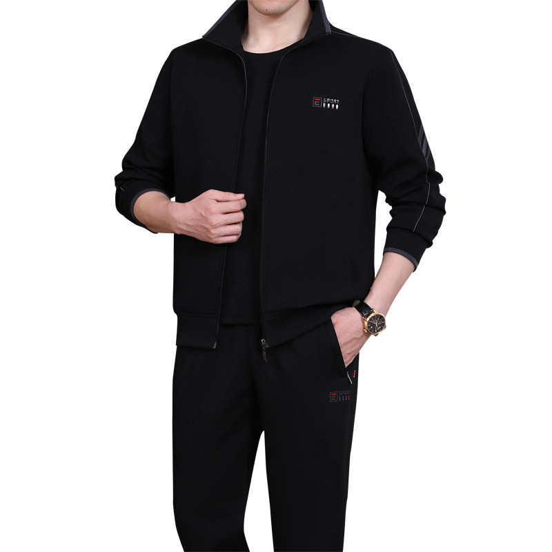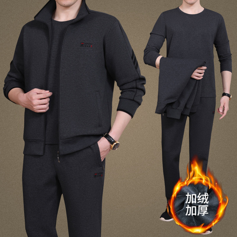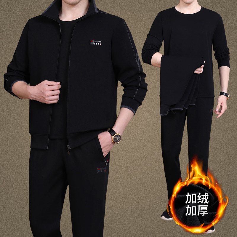 中老年爸爸冬季加厚运动服加绒休闲外套男士大码父亲时尚三件套装