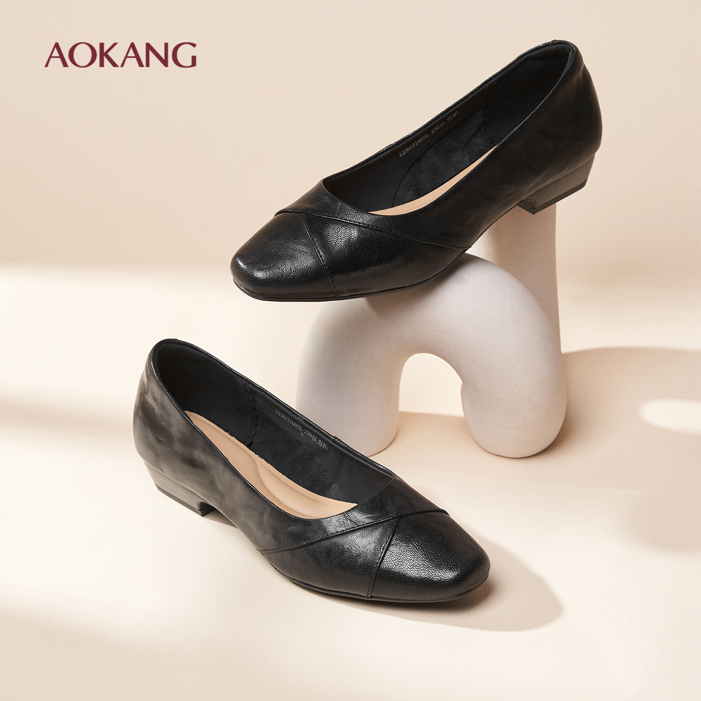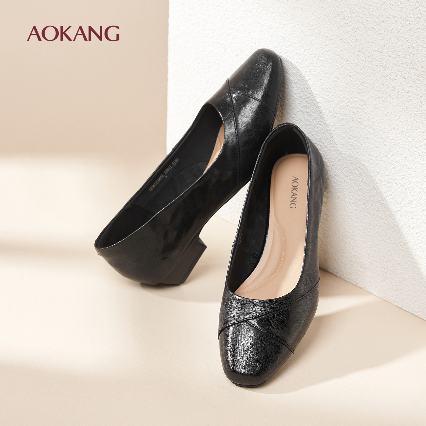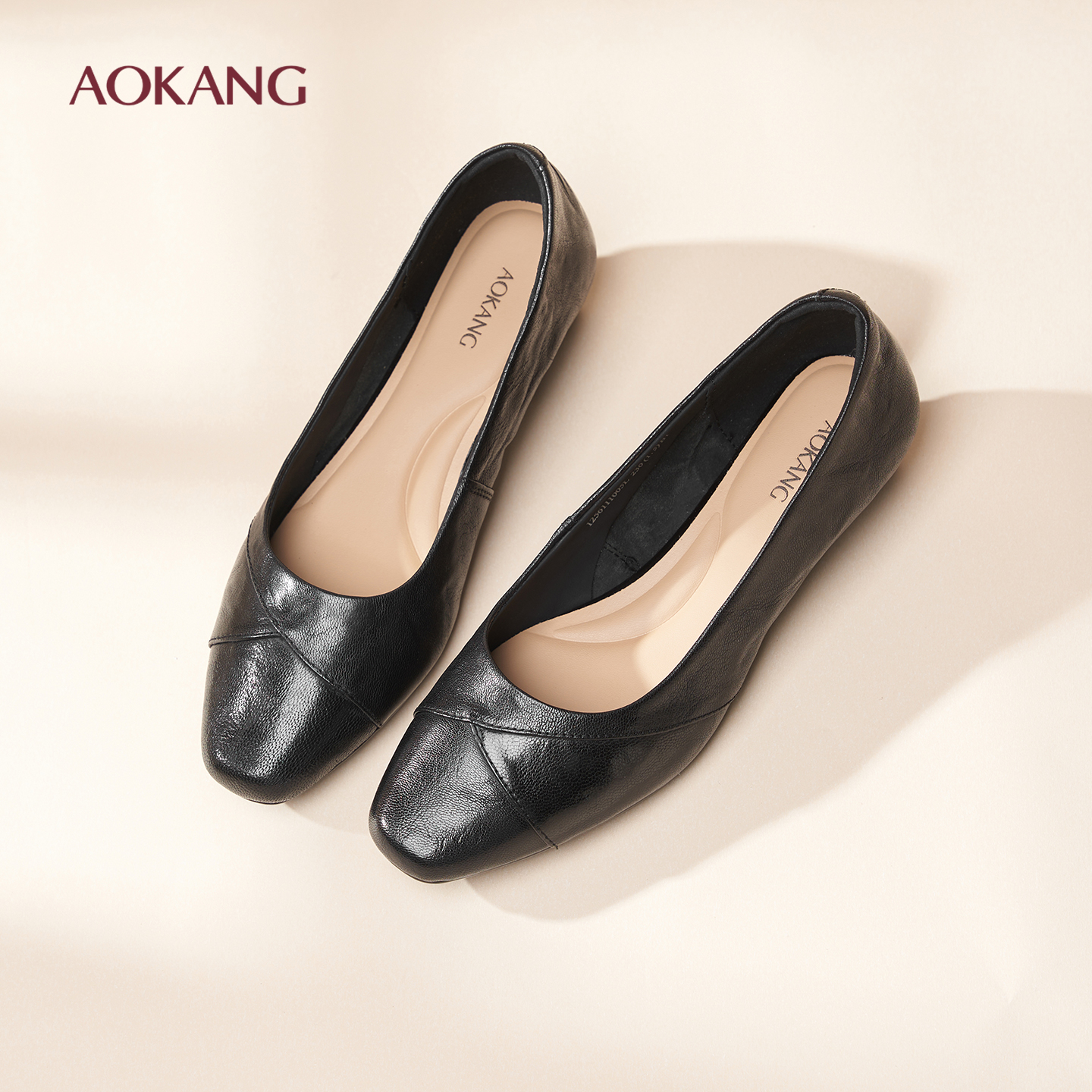 奥康 女鞋春秋季新款软底软面舒适百搭浅口羊皮单鞋小皮鞋通勤L