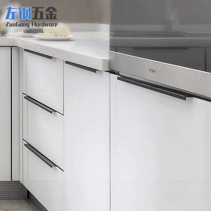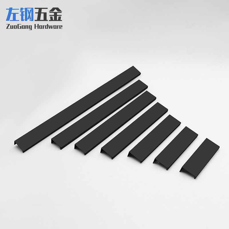 左钢铝合金隐形封边拉手橱柜门内嵌式黑/金把手加长拉手 五金