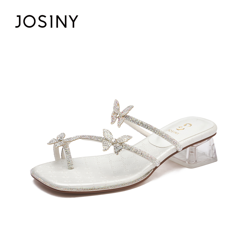 卓诗尼人字拖女2025年夏季新款时尚百搭优雅方头粗跟低跟拖鞋女鞋