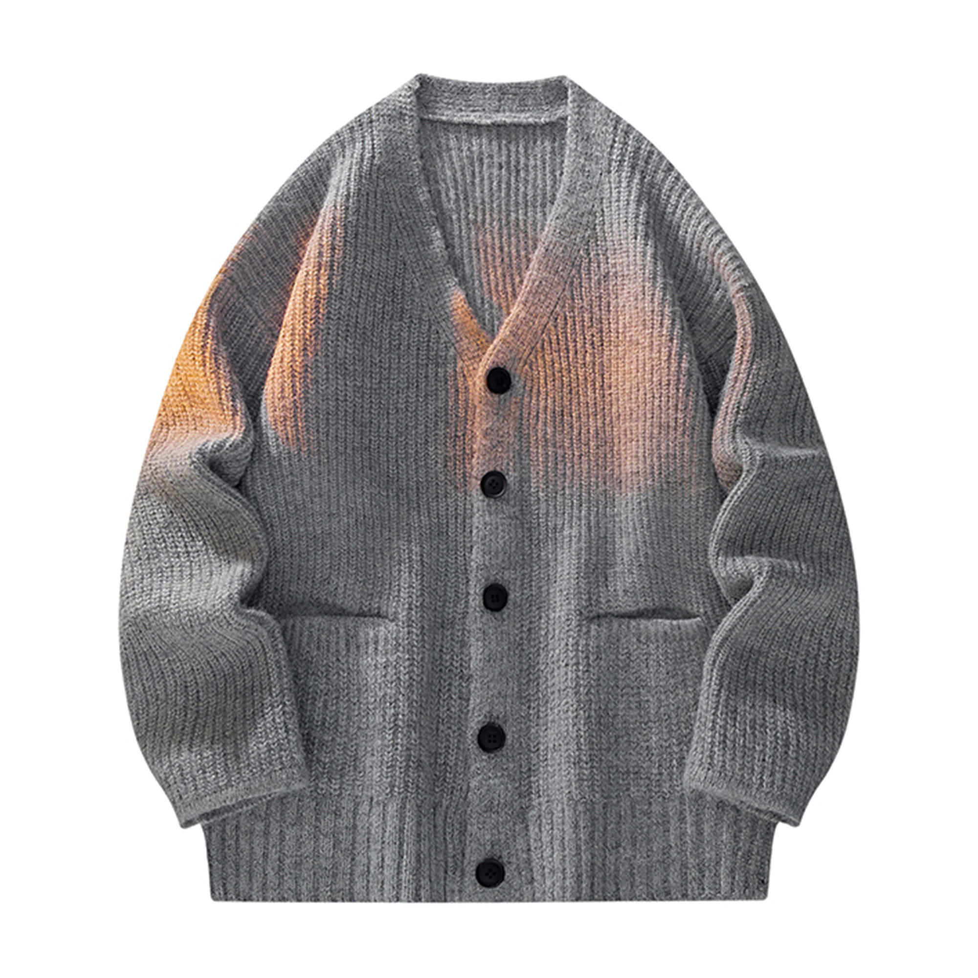胖胖哥纯色百搭针织v领开衫男秋季新款宽松大码休闲毛衣外套上衣