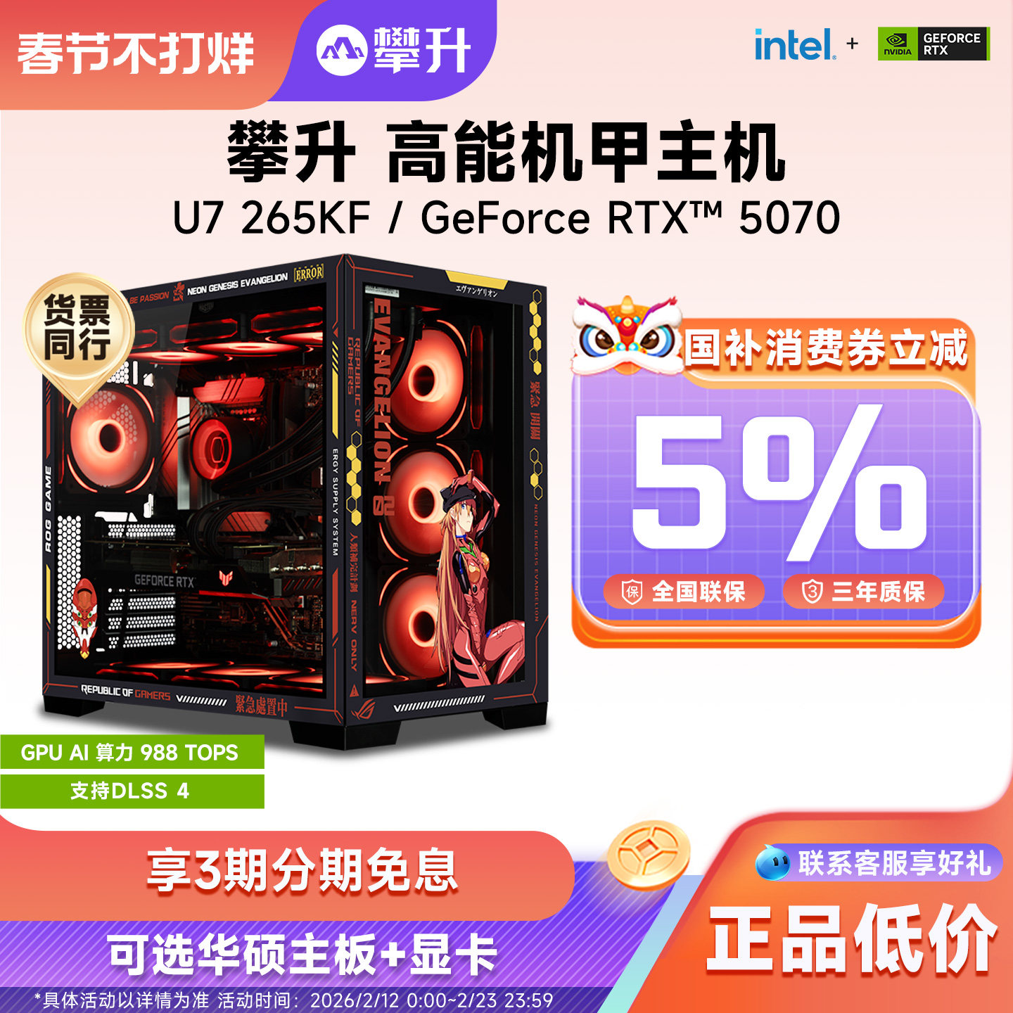 【国补主机】攀升无显卡台式电脑主机U7 265KF/RTX5070主机/5070Ti海景房游戏主机设计渲染DIY组装机电脑整机