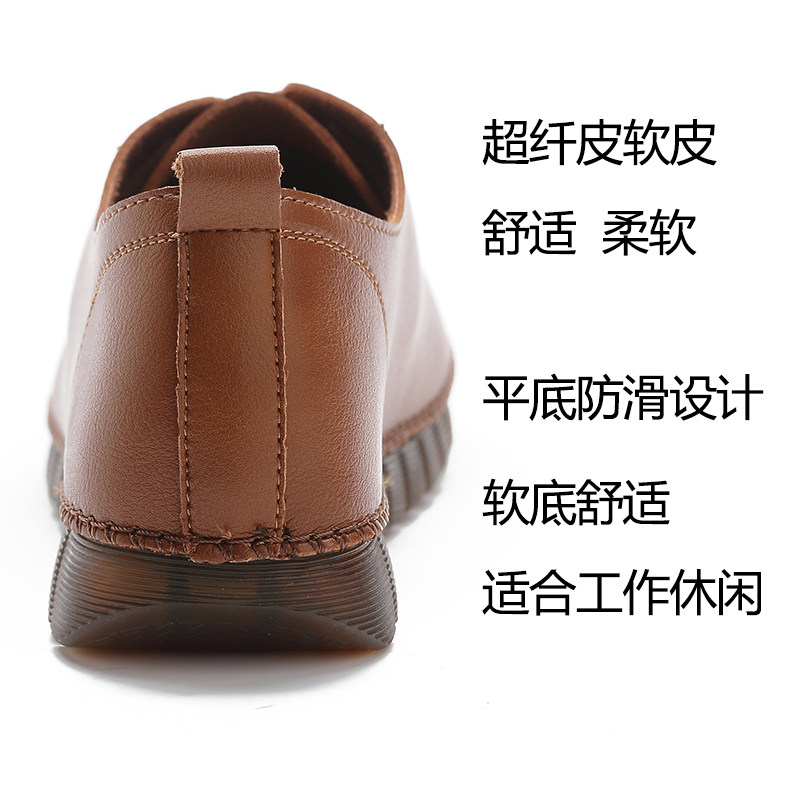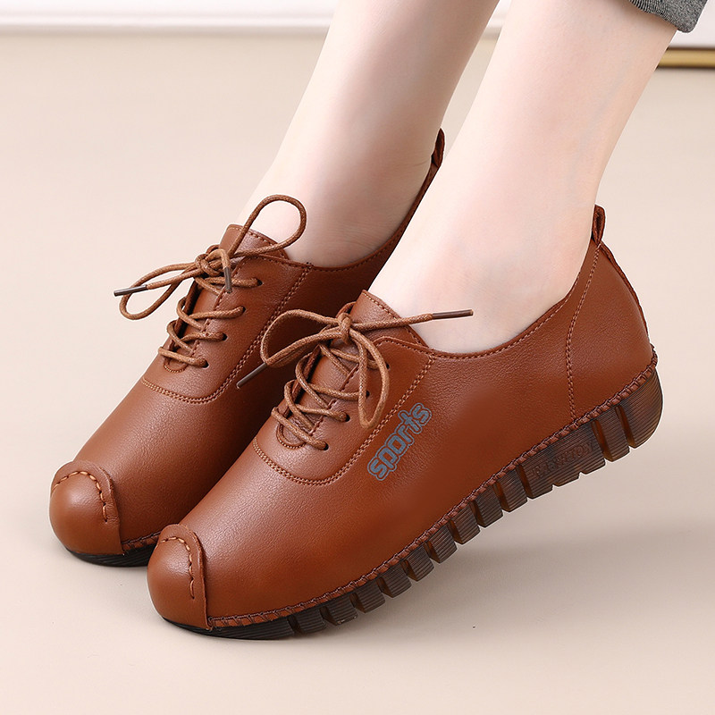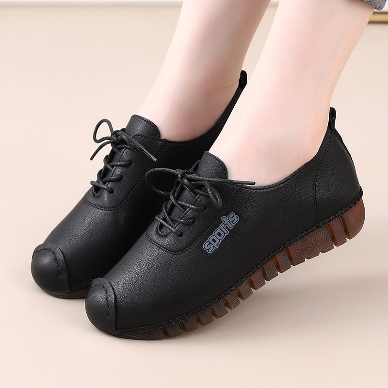 春秋软底单鞋女平底软皮厨房防滑系带舒适休闲鞋妈妈鞋牛筋底皮鞋