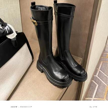 女童靴子2025冬季新款二棉皮靴儿童英伦风长筒靴小女孩洋气加绒靴