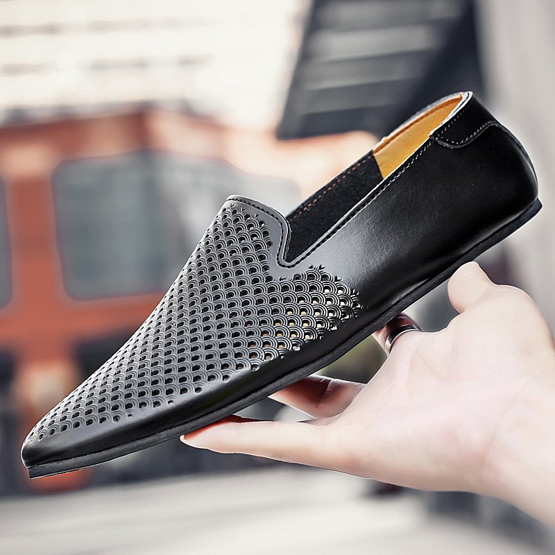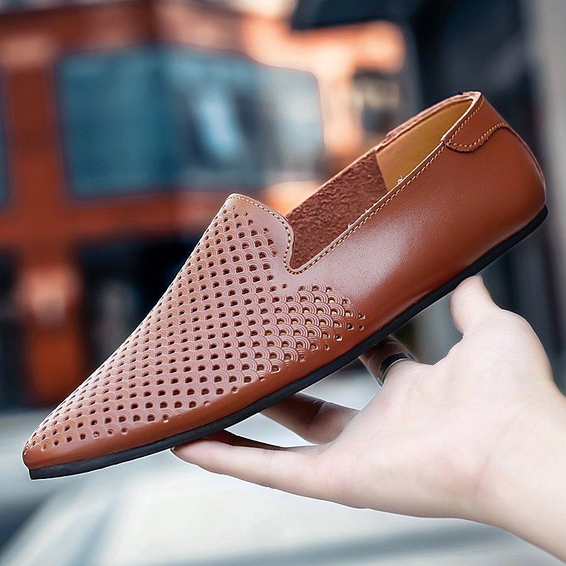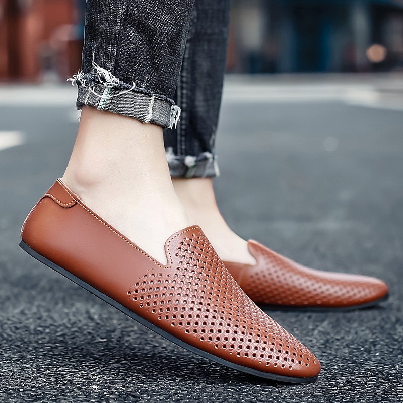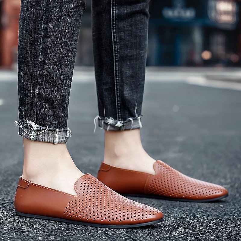 尖头休闲男皮鞋2025新款轻便软低真皮小码时尚潮流一脚蹬豆豆鞋男