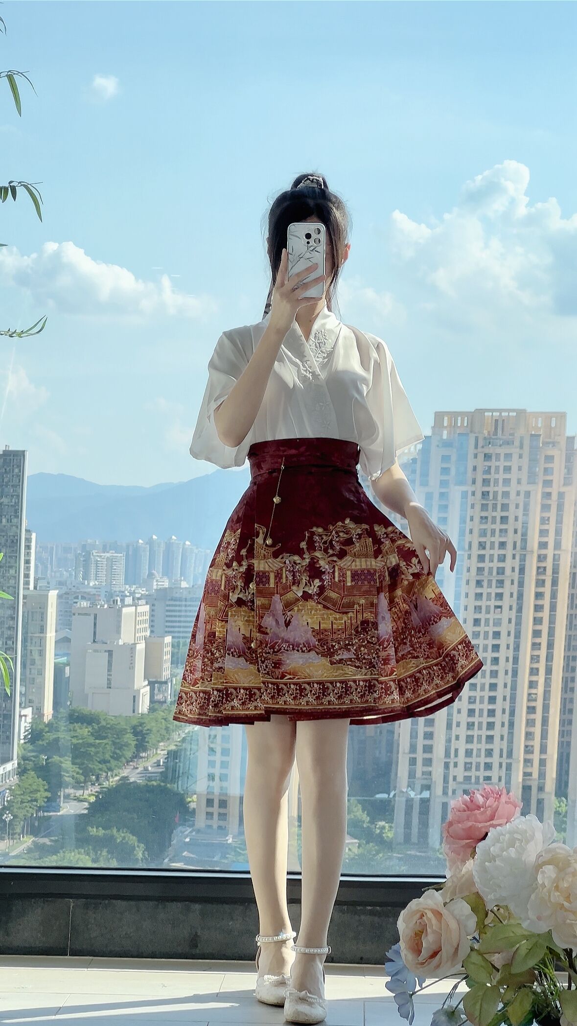 九笙原创【花满楼】新中式国风日常半身裙短款马面裙改良明制汉服