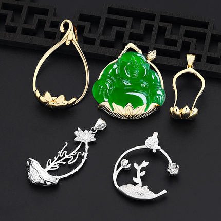 S925纯银简约款佛公吊坠托白金色宝宝佛翡翠童子站佛万能吊坠空托