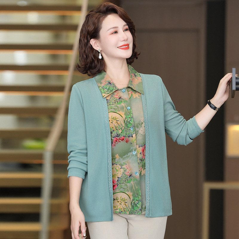 紫气东来中老年妈妈装假两件上衣女时尚气质女装大码中年衬衫领女
