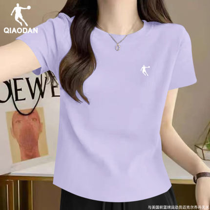 乔丹短袖t恤女紫色冰丝速干半袖2025夏季新款修身正肩瑜伽运动服