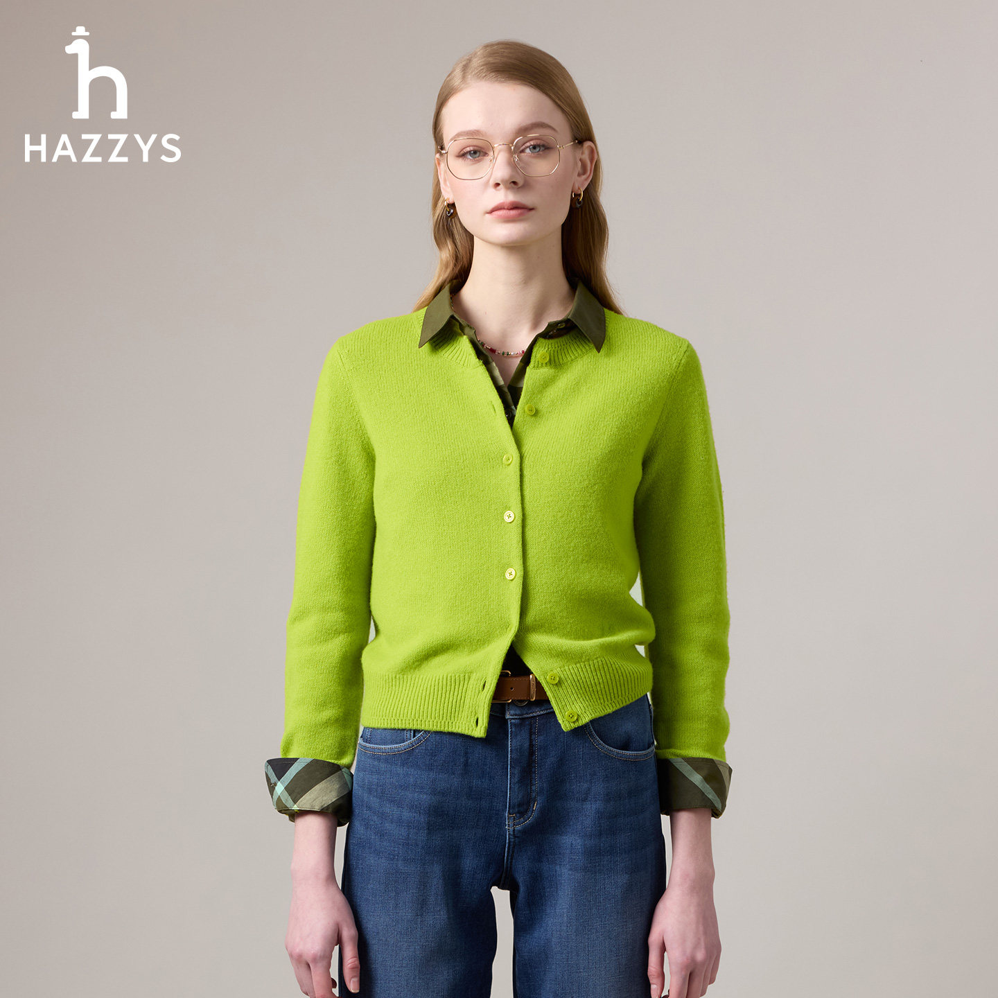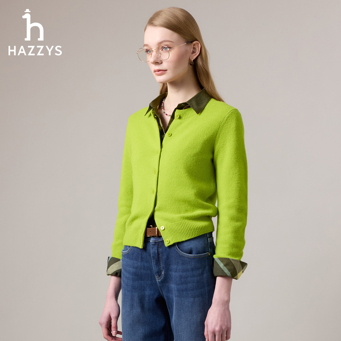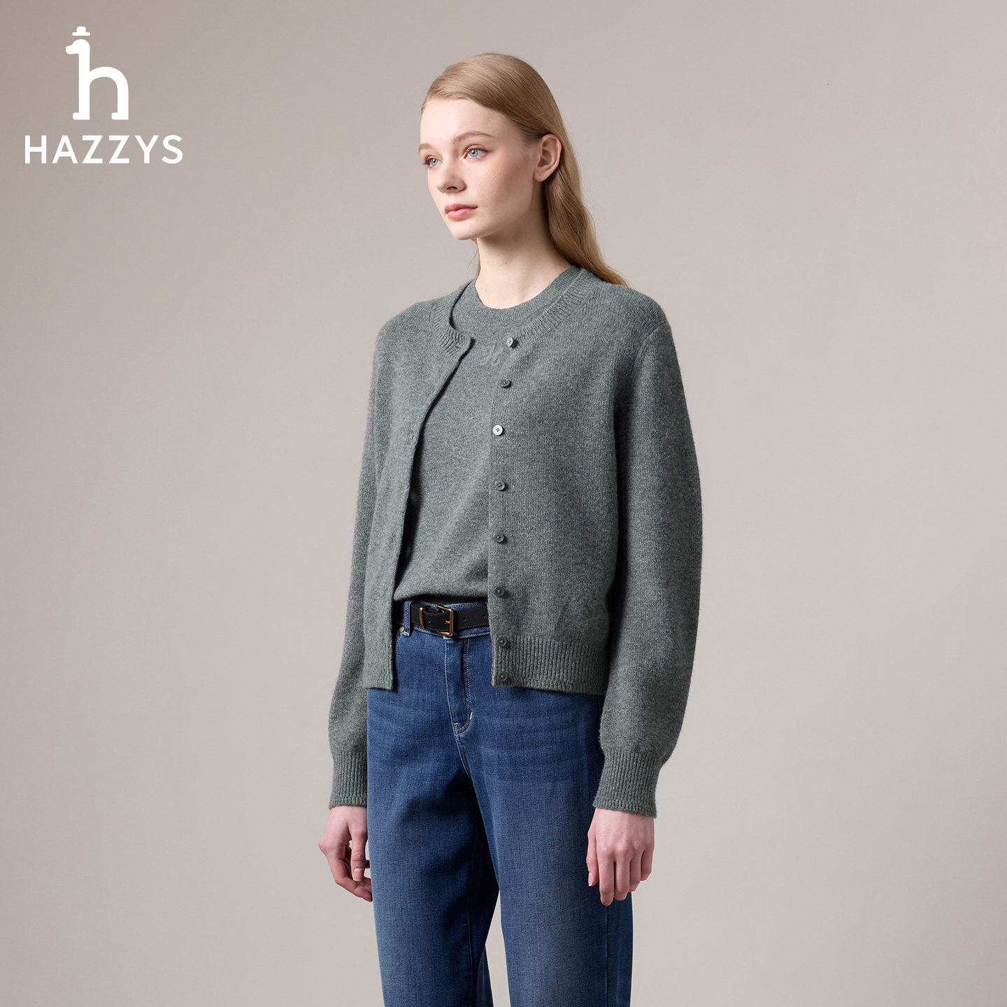 【商场同款】Hazzys哈吉斯针织开衫女2025秋季新品舒适纯色羊绒衫
