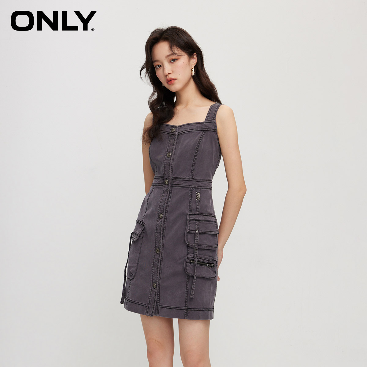 【ONLY奥莱】夏季时尚工装风口袋设计短款吊带连衣裙女
