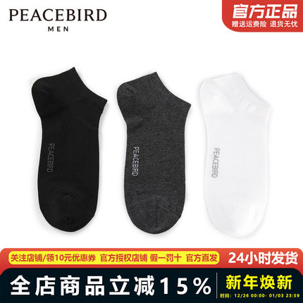 太平鸟男装袜子三双装2024年夏季新款刺绣短袜运动男袜BWYGE2183