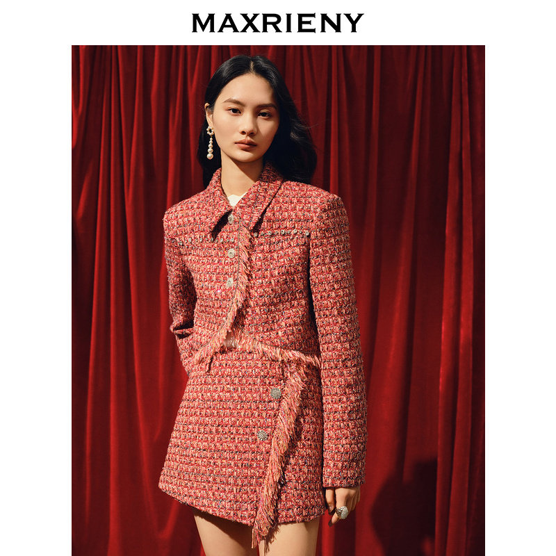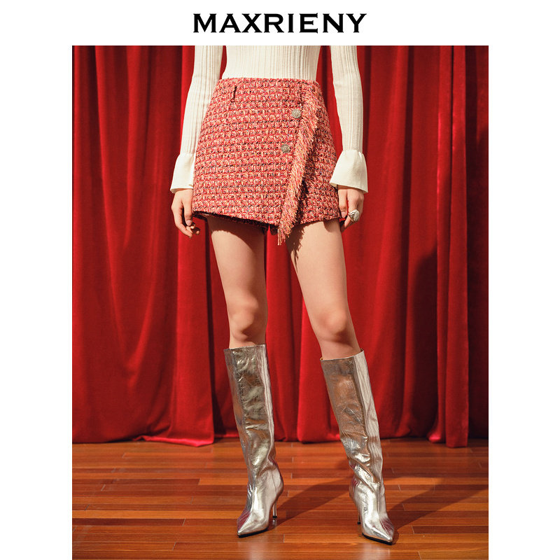 【2件8折】【商场同款】MAXRIENY新年红小香风半裙小香流苏裙裤