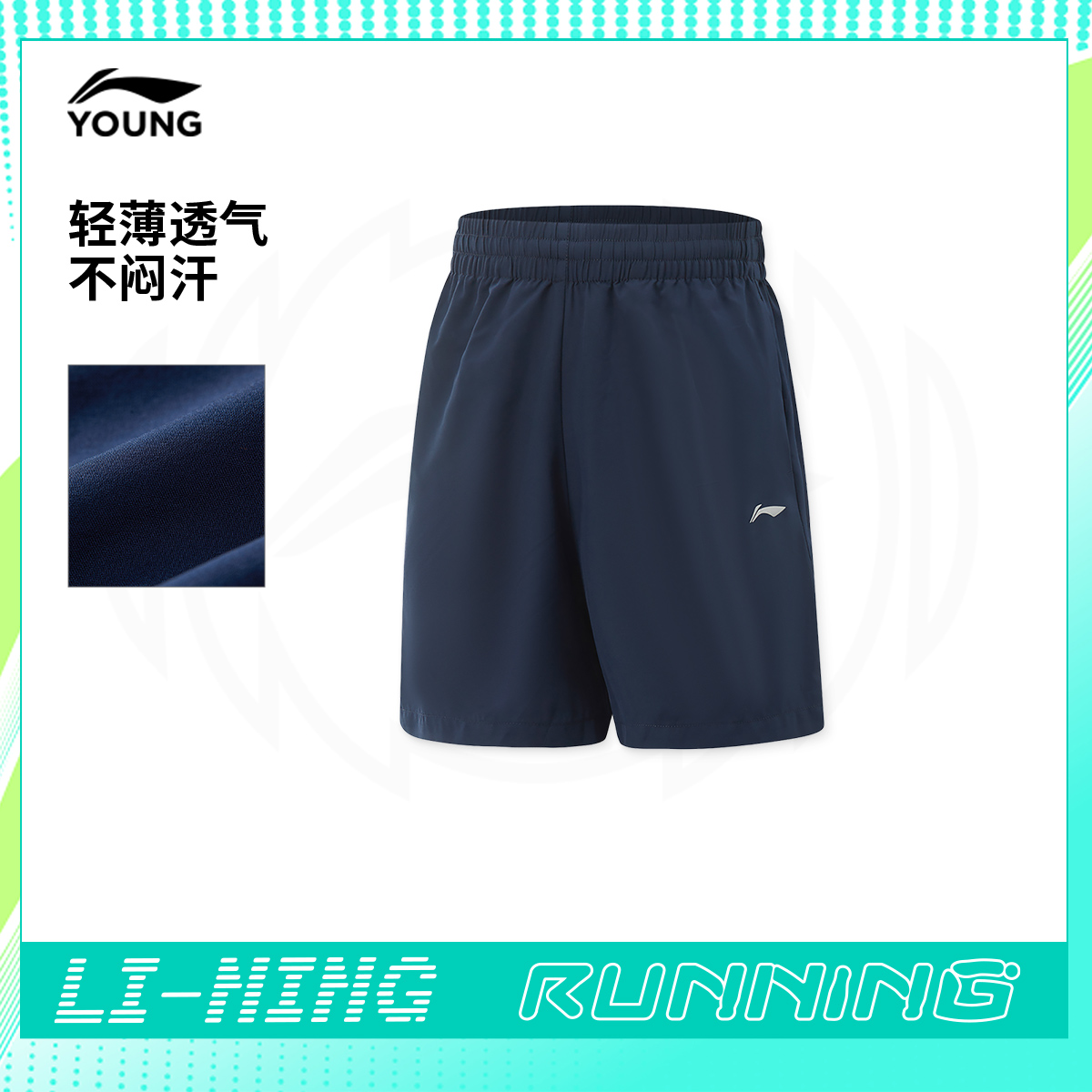 李宁童装运动短裤男大童2025新款跑步系列青少年夏季反光梭织童装