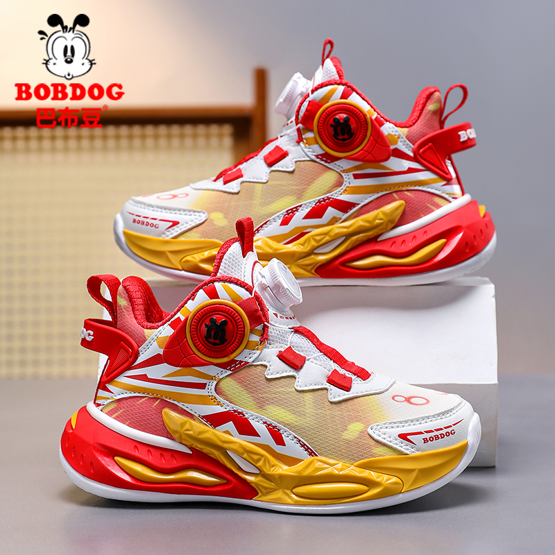 巴布豆男童运动鞋儿童篮球鞋春秋季2025新款中大童旋转扣子跑步鞋