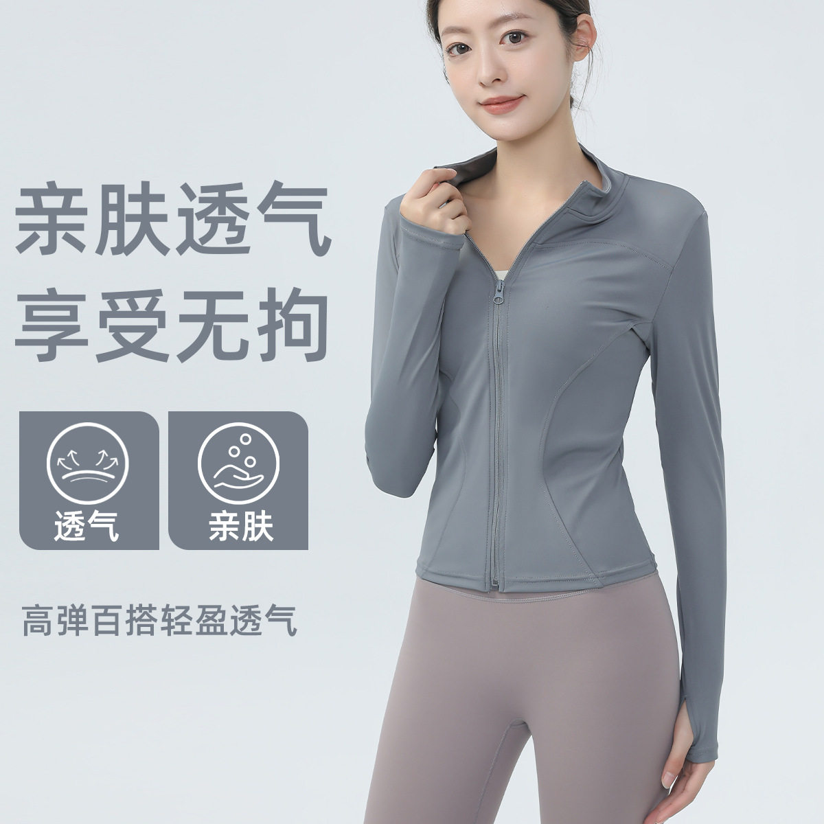 7A抗菌女健身外套修身速干上衣长袖专业跑步运动训练瑜伽服普拉提