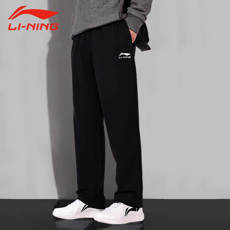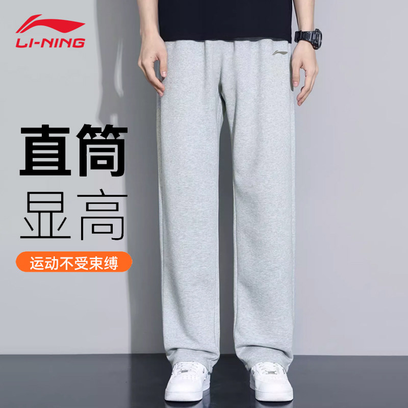 李宁青少年灰色裤子男春秋季新款卫裤宽松透气平口长裤直筒运动裤