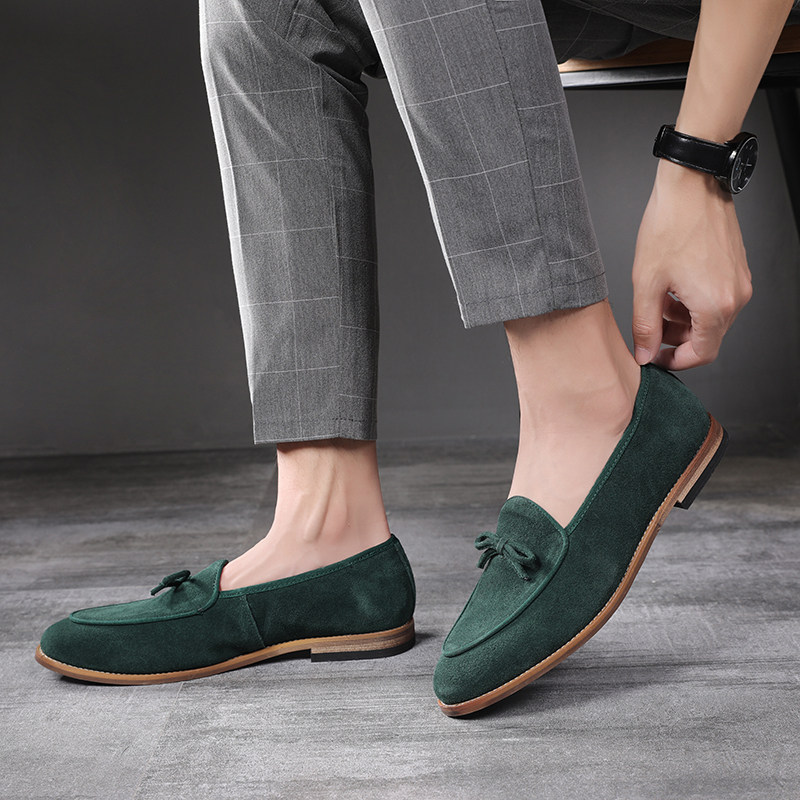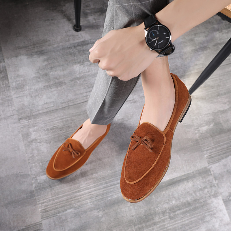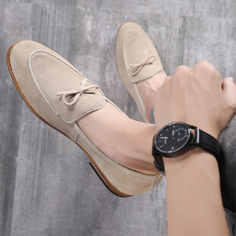 英伦真皮尖头磨砂蝴蝶结豆豆男鞋