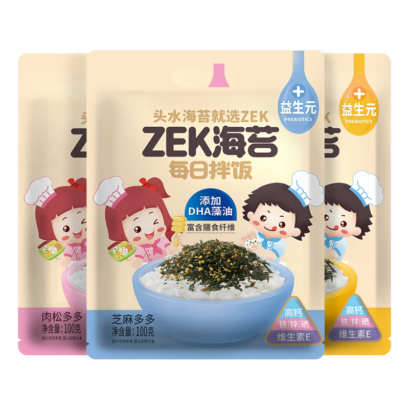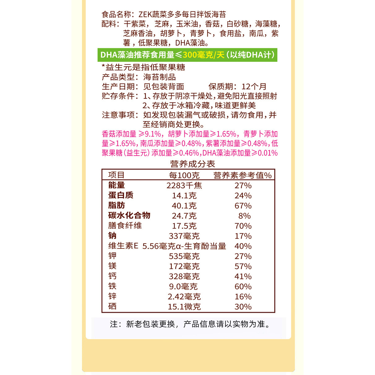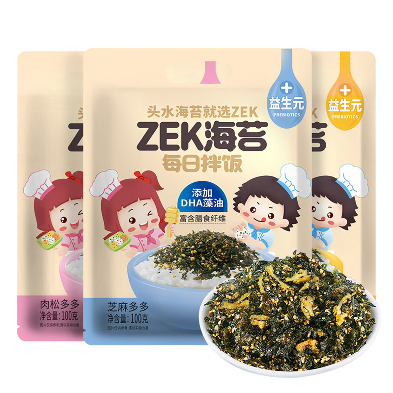 ZEK每日拌饭海苔原味100g/10包芝麻拌饭肉松味海苔碎紫菜海味零食
