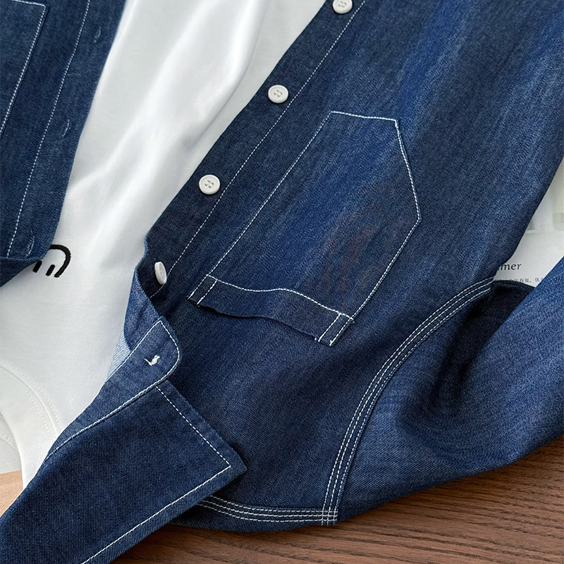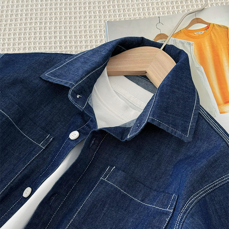 男童天丝棉轻薄休闲软牛仔衬衫~儿童外套中大童长袖衬衣百搭上衣