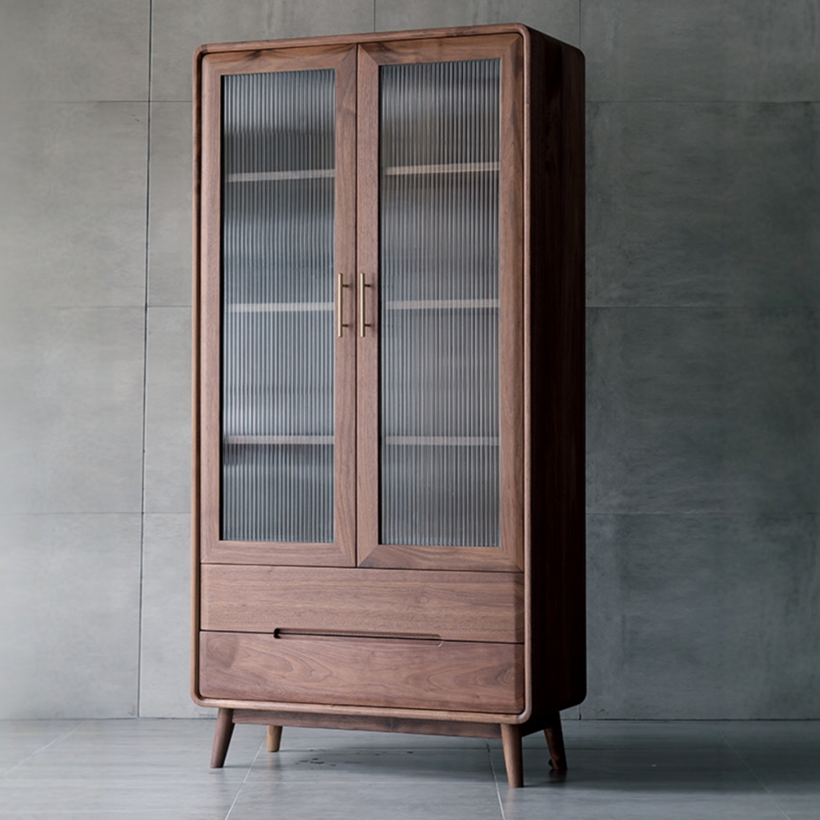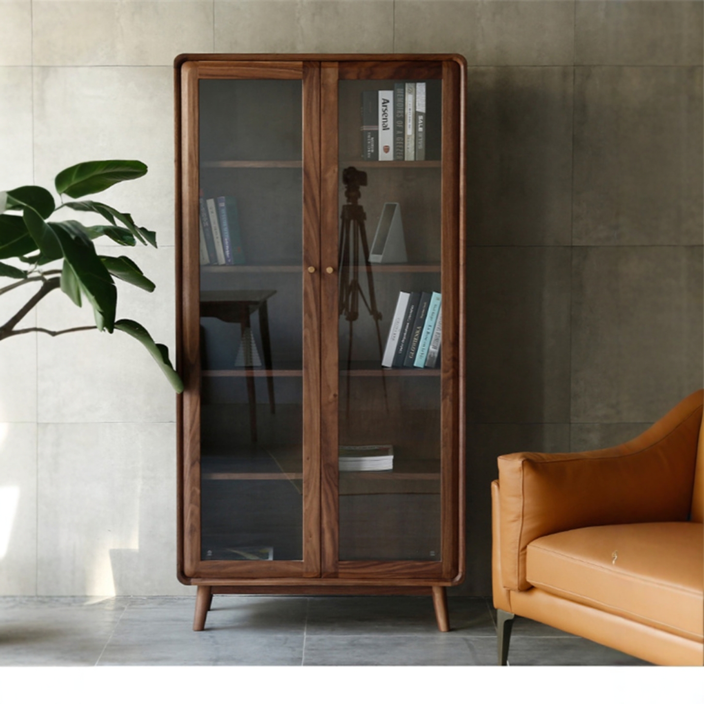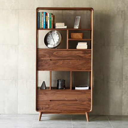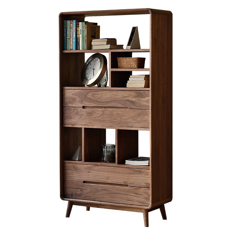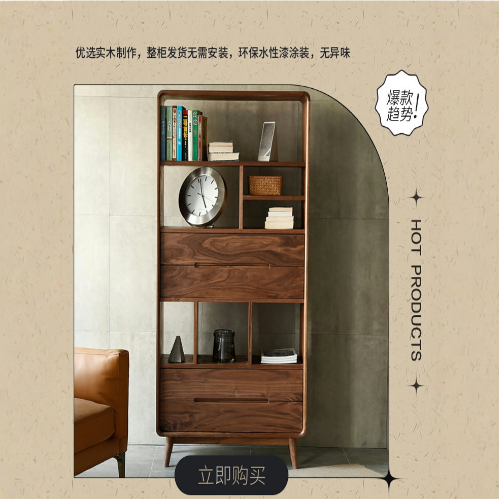 北欧全实木书柜黑胡桃木书架书房大容量收纳书报架储物柜原木书橱