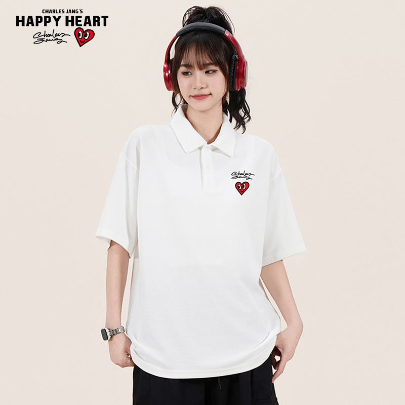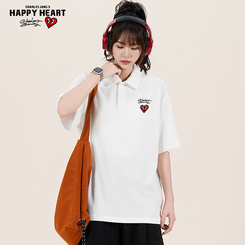 查尔斯桃心 简约爱心字母凉感珠地短袖POLO衫男女夏季休闲翻领T恤