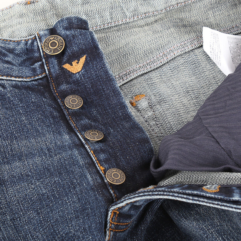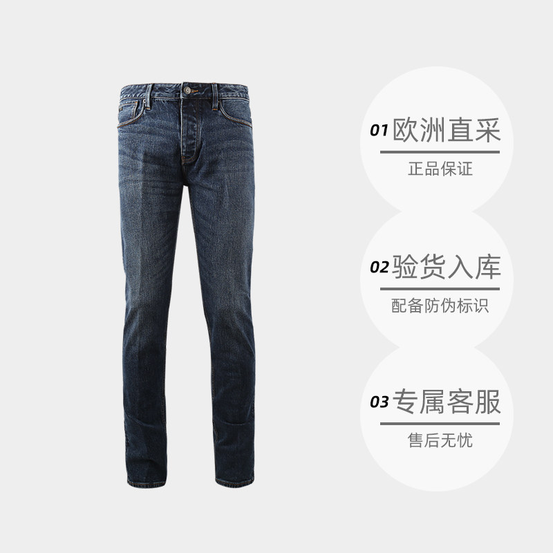 【自营】EMPORIO ARMANI/阿玛尼男士纯色修身纽扣休闲直筒牛仔裤