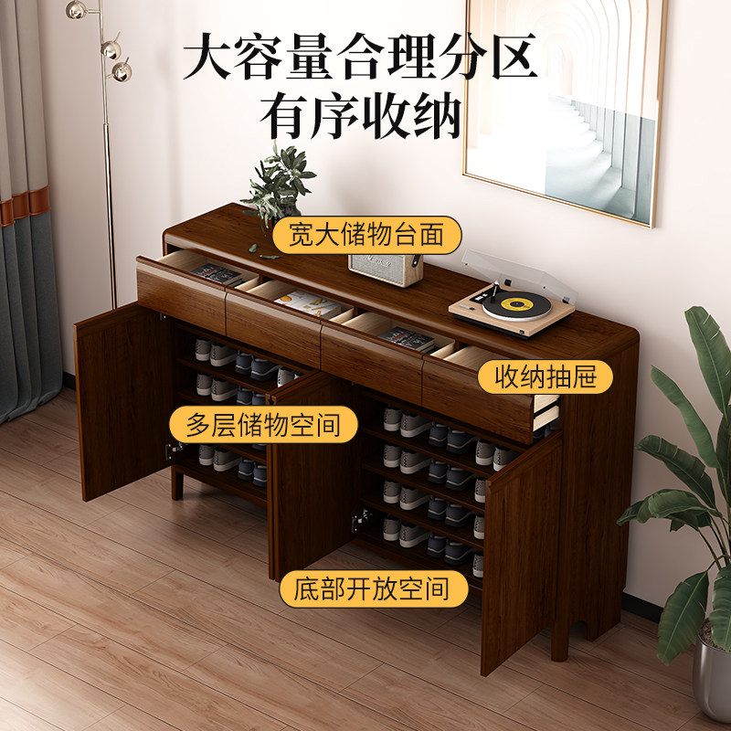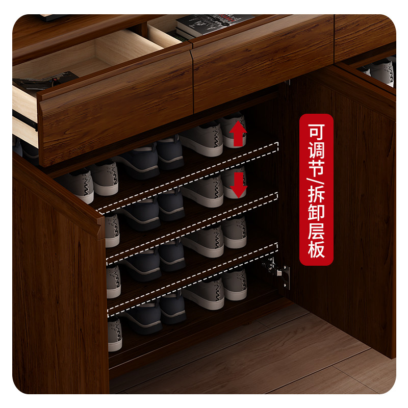 希木森新中式鞋柜门口入户玄关一体收纳柜实木框架大容量隔断柜